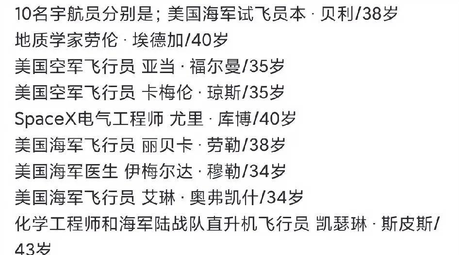 美国公布了10位宇航员候选人,有三点出人意料。 第一,这批选拔,女性比男性多!女