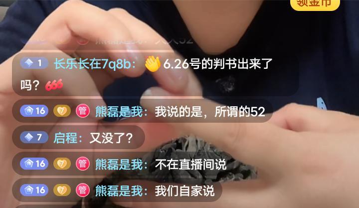 熊磊今天晚上在堂嫂在直播间说: 天天说52, 哪里来的52, 她的诉讼都没有52