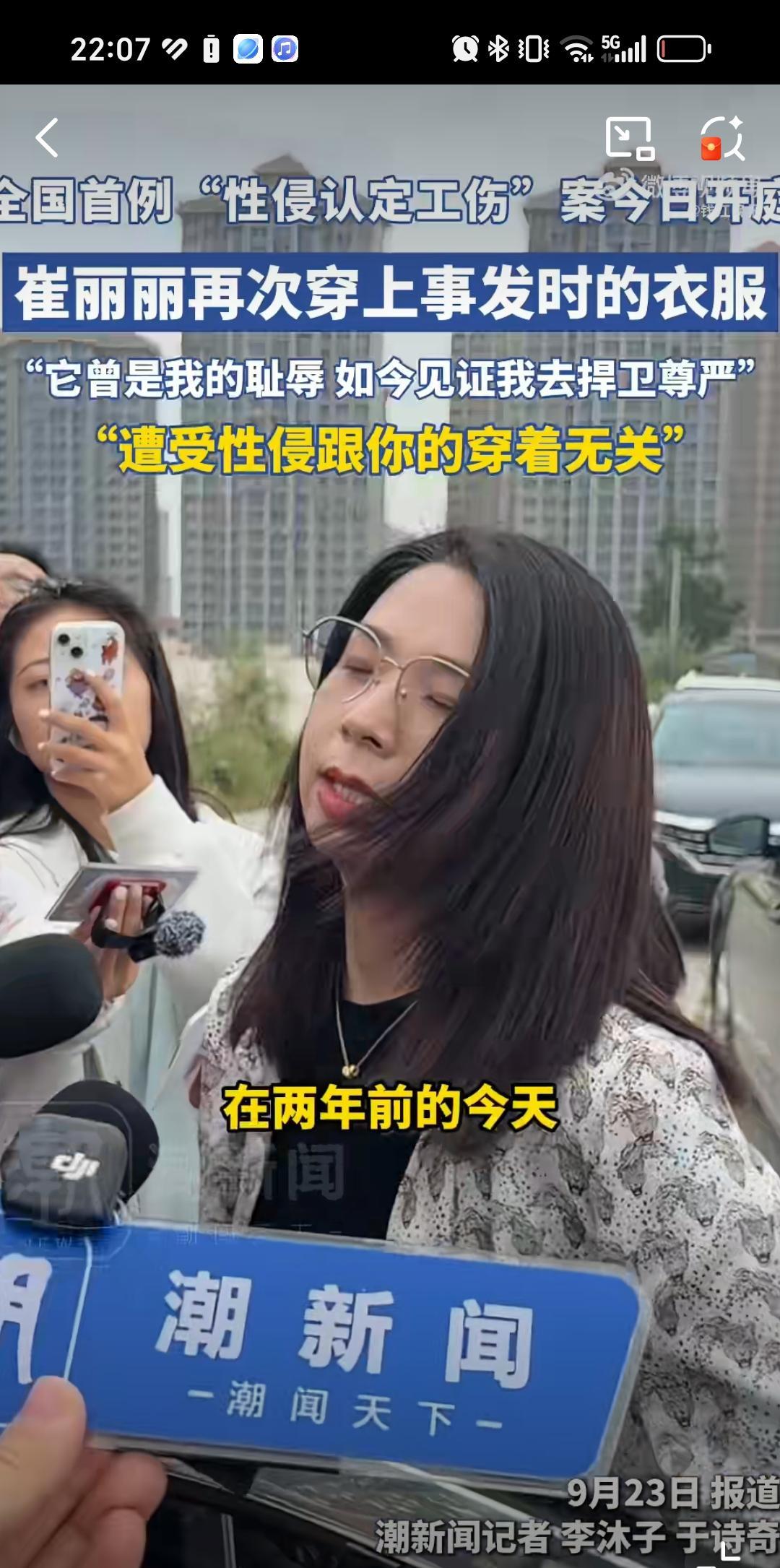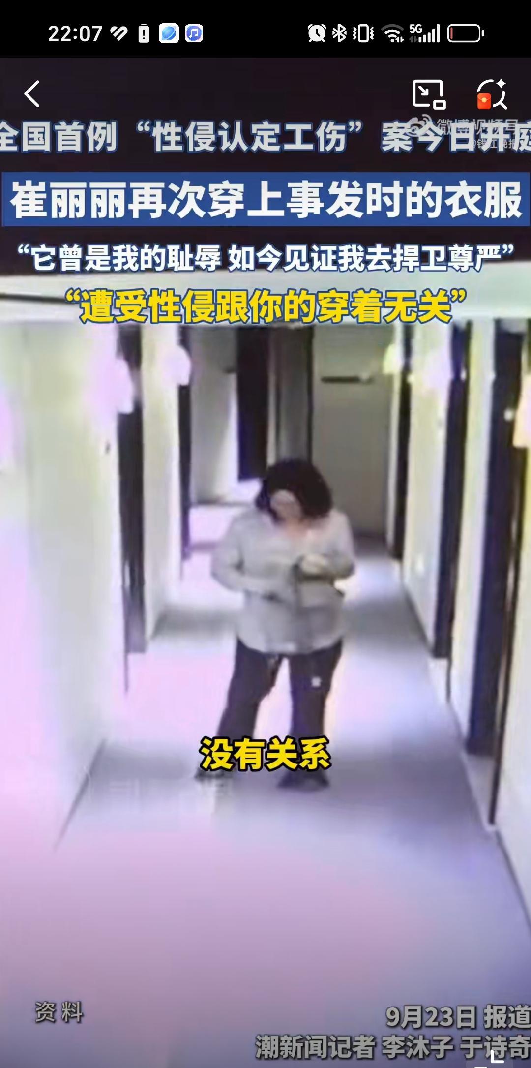 9月23日崔丽丽穿上被性侵那天的衣服和鞋子给自己打气,说这件衬衣很普通,很多人都在职场穿,不存在勾引。 说实话很正常的穿搭,这件衣服确实很保守不是很露,所以不要再说崔丽丽原因老板把持不住。 说实话我感觉崔丽丽在一次次的采访中很强大了,给很多遭受职场性侵女性给指明道路。 这次法院虽然没当庭宣判,但是我相信正义一定在崔丽丽这边。职场女性取得成功比男性难多了,做到销售总监真的很厉害。可惜一盒性侵案17年的职业生涯和履历因病全部没用了。太心疼职场女性崔丽丽了。