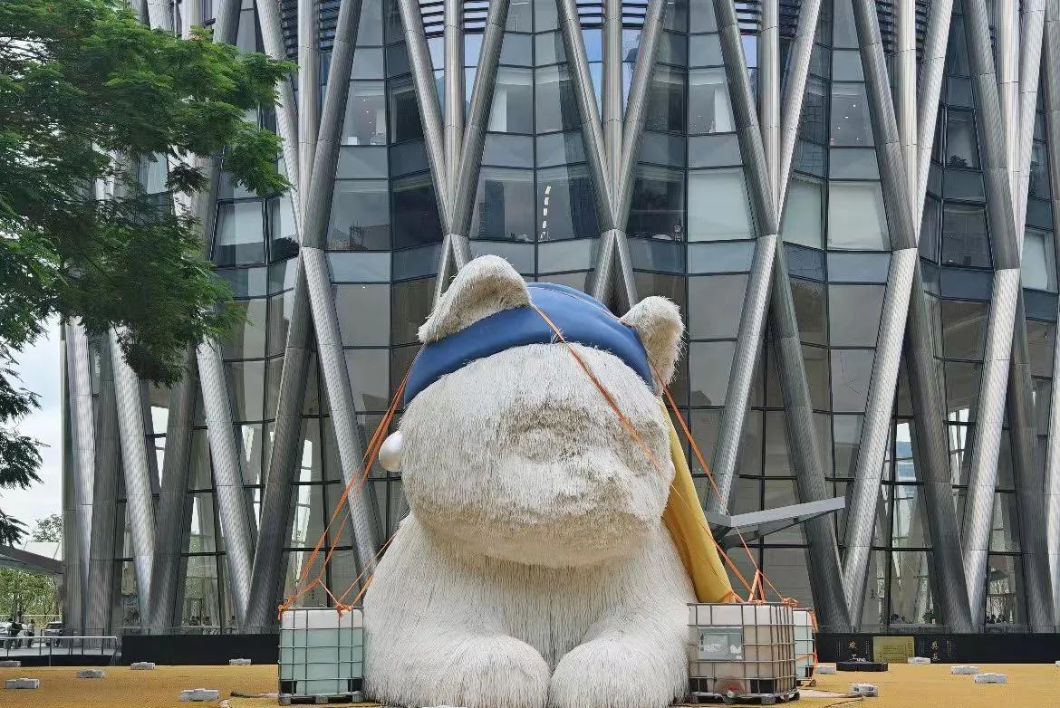 深圳被逼成啥样了!街头到处都是被“桦加沙”绑架的“工具人”! 为了在“桦加沙”手上保住这些玩偶,深圳人各出奇招,有的绑手,有的固定头,有的全副武装,有的五花大绑,就为了防止这些玩意跟着台风飞走了。 要说防台风还是要看气象部门(图八、图九及图十),为了防止大门被台风损坏,海口气象局直接装上了铁门!惠州气象局更是把大门贴的密密麻麻的胶带! 相比台风“山竹”,整个广东应对超强台风的预案和准备更有经验了!