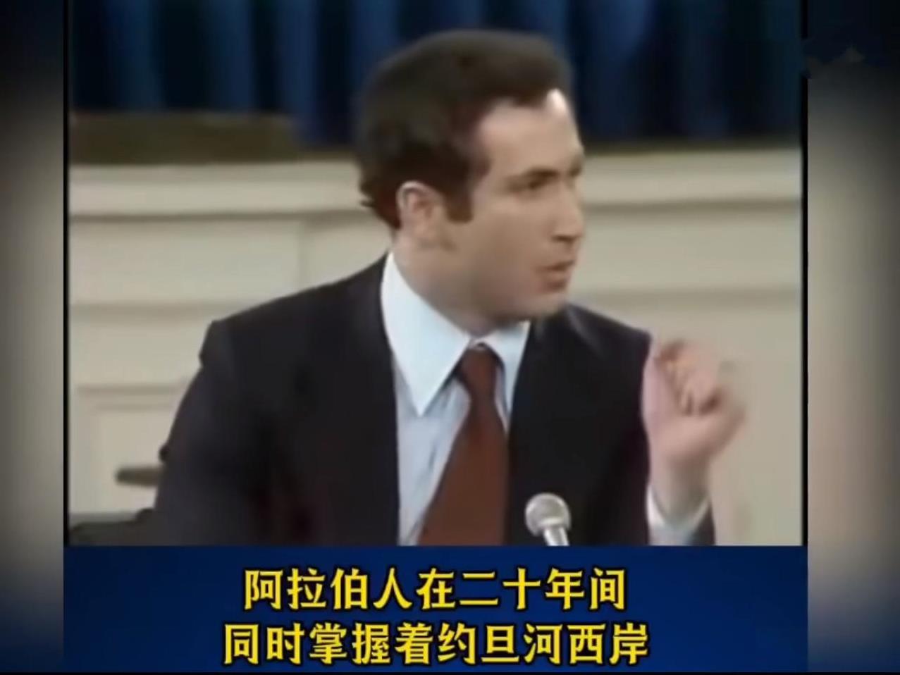 1977年,28岁的内塔尼亚胡参加了美国《倡导者》节目,发表了他对于巴勒斯坦的看法。 当时他就反对巴勒斯坦建国,并已经开始绑定美国作为坚实的后盾。 可笑的是,他居然也承认巴勒斯坦人一直占据着约旦河西岸以及加沙。那时候的巴勒斯坦地区面积多少他心里没点数吗?