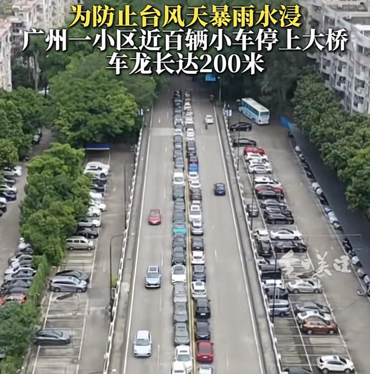 宁扣2分,罚200,也不要让车泡水里,广州车主也是拼了! 为防这次台风“桦加沙”台风水浸泡车辆,广州番禺丽江花园小区业主近百辆小车停在丽江桥中间!这样会不会对桥梁造成安全隐患呢? 丽江桥属于小区内部桥梁,主要服务丽江花园小区住户,是小区居民进出的必经通道。桥梁按小区内部通行道路标准建设,结构与市政道路和公路技术标准是有很大差别的,特别是桥梁荷载和通行能力。(来源:今日关注) 小区业主宁愿伤桥也要护车,这种办法只能得不偿失。算算,一台车一T,一百多台车就是一百多T,桥塌了,出了事故又算谁的?关键这事归物业管,奈何交警管不了,因为这是小区内部桥。