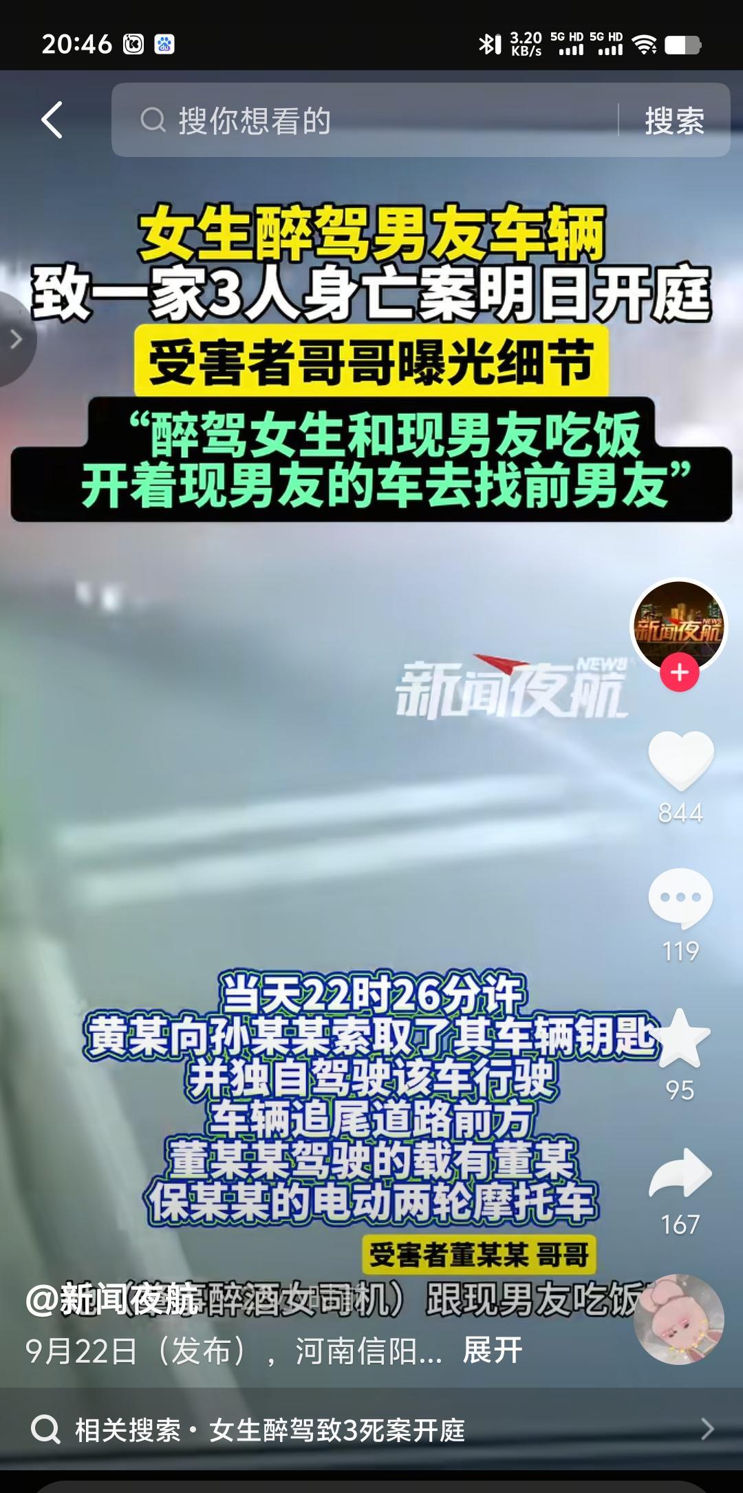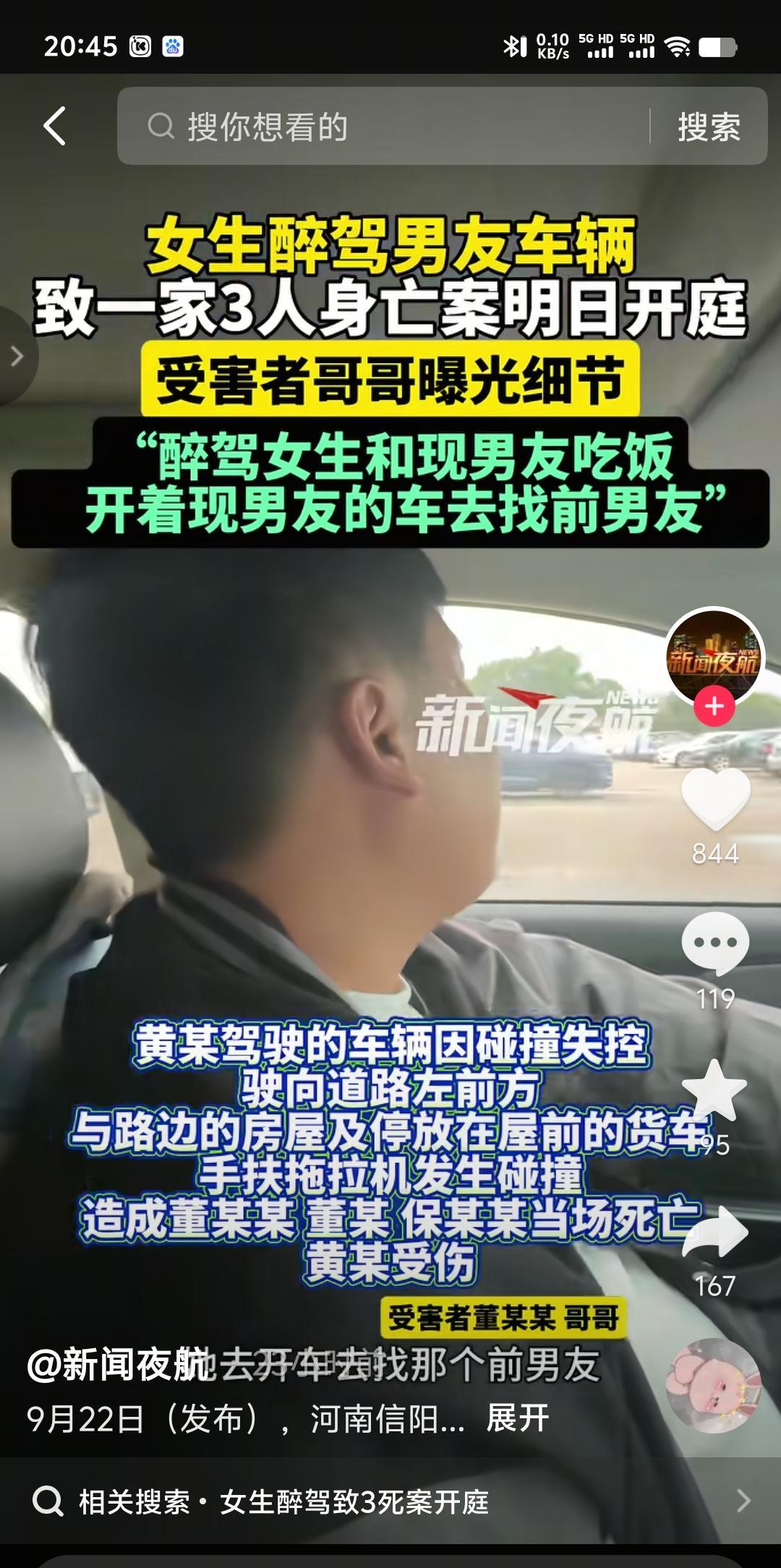 与其说是是事故,还不如说是一部都市爱情悬疑故事。 开的车,喝了大量的伏特加、白酒和啤酒。跟现任男友吃饭,却给前任男友打电话让其过来。遭到前任男友拒绝,按理说事情也就到此为止,却酒后开车找前男友。明知女友喝了不少酒,明知酒后开车违法,现任男友却偏偏把车钥匙给了女友。 人员密集区域,限速40迈,而黄某的车速竟然飙到了174迈,可以说是就差起飞了,事实证明最后确实起飞了。知道等红灯,知道避让小狗,却不知道174迈追尾电动摩托车的后果。是受到酒精刺激还是另有原因?我们不得而知。总之一句话,不管什么原因,也无需任何原因。三条鲜活的生命决不允许小丁点儿原因,肇事者唯一的选择就是“判处死刑,立即执行”。