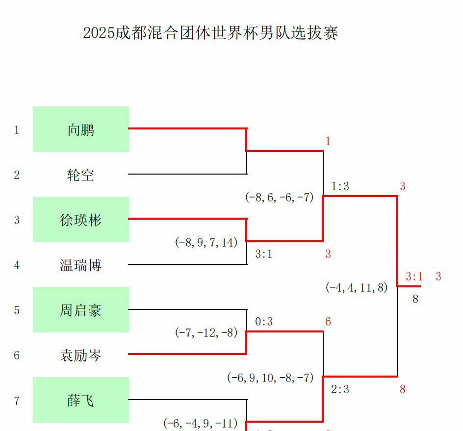 9月24日国乒成都混合团体阵容为:王楚钦、林诗栋、梁靖崑、徐瑛彬、孙颖莎、王曼昱、蒯曼、王艺迪。 说实话徐瑛彬胜出有点不可思议,我原本以为林高远会参加,没想到男队更新换代这么厉害,林高远以后很难了。女队竟然不是陈幸同或是陈熠最后王艺迪靠实力胜出了。所以王艺迪还是有点实力在对内比赛还是很无敌的。但是女队团体上陈幸同比王艺迪靠谱,现在孙颖莎和王曼昱可能得拉着蒯曼和王艺迪很累。这个团体女队不容易啊。 男队更难了。 但是既然已经出来名单了相信王皓和马琳都会有应对办法。