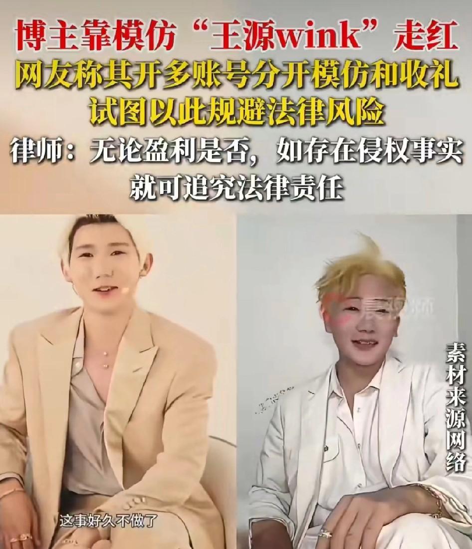 模仿王源的网红“王扁”大概率要摊上官司了!因为他一直都在丑化王源的形象,败坏王源的名声,这个之前模仿杨坤的“四川芬达”差不多,都是拿丑化明星来获取利益。 而“四川芬达”的下场是账号被多次禁言,还被杨坤直接起诉了,打官司要求他们赔礼道歉,他们还发了道歉视频想让杨坤对他们高抬贵手。 “王扁”的性质则要更恶劣一些,因为他不仅仅是丑化王源,还利用丑化王源来获得礼物打赏。 专业律师付建表示王扁的行为已经侵犯了王源的名誉权,只要王源起诉他,他就需要承担民事责任。 现在王源的粉丝们都艾特工作室,让工作室赶紧取证起诉,不知道王扁被起诉后,会不会和四川芬达一样公开道歉求原谅呢?