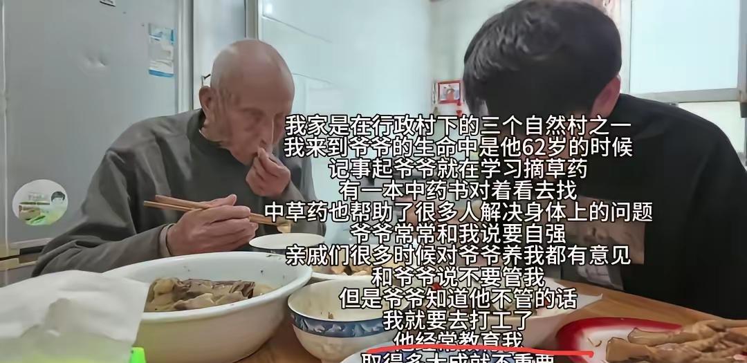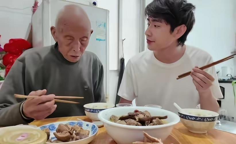 黄凯和爷爷一起吃饭,感觉黄凯很爱爷爷,这个父母都感觉是累赘的孩子在爷爷的怀抱里长大然后成才,现在有钱了黄凯爷爷也能享福了。62岁老人带着刚出生的孙子,养成大学生太不容易了,也是个善良的老爷爷把黄凯教育的很成功。 爷爷现在90多岁了身体看着很硬朗,希望可以更长寿,孙子黄凯可以更好的孝顺他。因为黄凯还没结婚,跟爷爷很亲,很亲。所以希望爷爷可以多多陪伴黄凯。