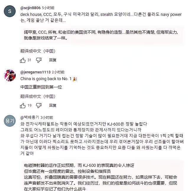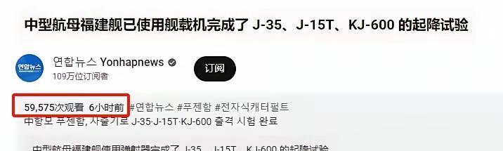 韩国媒体转发了我国福建歼弹射战机的画面 韩国的描述很简单,只有一句话。 中国中型航母福建舰完成j15,j35,空警600的起降实验。 该消息报道六小时以后,这个媒体有109万订阅者,但观看的人数不到六万人。 看得出来,韩国媒体对于中国武器装备的报道并不太上心。 韩国人大部分人对于中国的武器装备也并不在意。 福建舰排水量超过八万吨,是属于大型航母。但韩国媒体在报道时却把福建舰归类为中型航母,这点小心思让人觉得可笑。 有韩国网民看到报道做出了客观的评价, 他说:电磁弹射器的运作正如预期,而KJ-600的表现真的令人惊讶 但毕竟还有一定程度的雷达、控制设备和指挥员 这真可怕,折叠翅膀真的需要很多技术。现在韩国还在努力,如果这样下去,可能会连声音都发不出来就消失了。 韩国网民比韩国媒体更会正视自己。