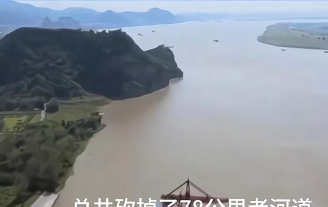 长江被砍掉78公里? 河道由弯改直,旧河道现在叫老江河,算是个水库。那是一个D字型的大弯,直的那个“l”型是现在的长江河道,弯的“C”型是老江河。 78公里河道形成双道合流。建个坝成为了天然的养殖鱼河道,养殖出来的大量鱼。长江截弯取直后,就成了长江故道,但和长江还是相连的,又不跑航运,鱼很喜欢这个地方,长江边很多渔民,夏天捕鱼,一般9个人两条船,一条船放渔网,要是运气好碰到鱼群,一晚上能搞一万斤,一块钱一斤,人均一千,这是极限,通常人均一晚几十块甚至几块。后来禁渔后,还放了6对江豚在那里养着。