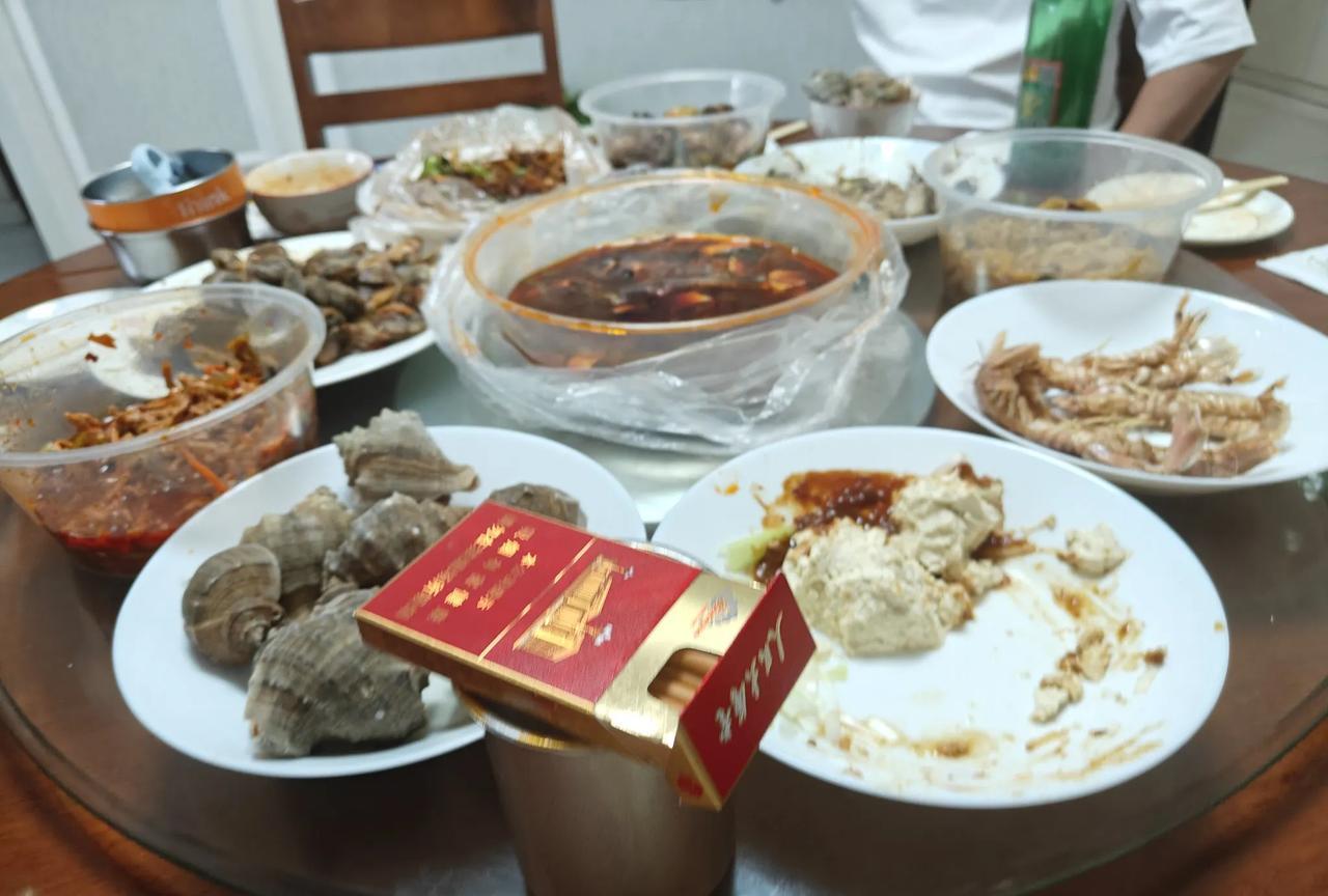 现在说,我们昨天开车去了一个叫港东库的大车店饭店点菜打包,坦克老兵老洪因为家在附近,经常光顾他家店。 说句心里话,他们每次出行都有安全风险。也都是50岁上下,上有老下有小,肩上担子不轻。 我们昨天晚上除了小明上火,没喝多少,俺们三个一人喝了8瓶。 我说最后一人再来两瓶,这个时候没有饭桌子高的小男孩二老蛋喊:“我不同意!”