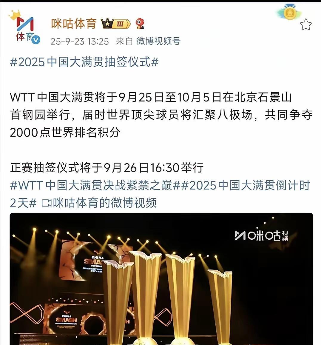 最新消息,中国大满贯抽签仪式于26日举行! 我估计是林诗栋和孙颖莎出席。 因为倒
