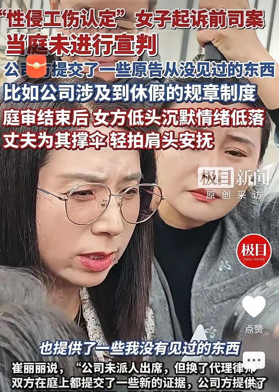 9月23日崔丽丽从法院出来感觉眼神都迷离了。因为崔丽丽性侵案认定并未当场宣判,而且公司提供新的证据也换律师了,原本信心满满的崔丽丽现在出了法庭有点迷茫了。但是丈夫还是帮助撑伞拍肩安抚,说实话个人跟公司斗很难,打官司很难,公司可能有律师团队而且,公司规章制度可以改。 现在崔丽丽和老公接受这么多采访,透露太多对自己不好,万一输了可就是另一种说法了。 崔丽丽很勇敢为很多职场性侵提供了新的办法,和引领说明她很勇敢了,但是如果真的是其他原因就有点打脸了。 当初老板给200万或是50万北京一套房见好就收可能就不这么复杂了,现在感觉官司越大越复杂,搭上自己的职业生涯和老公的精力还不一定赢,真的这个官司没有赢家。