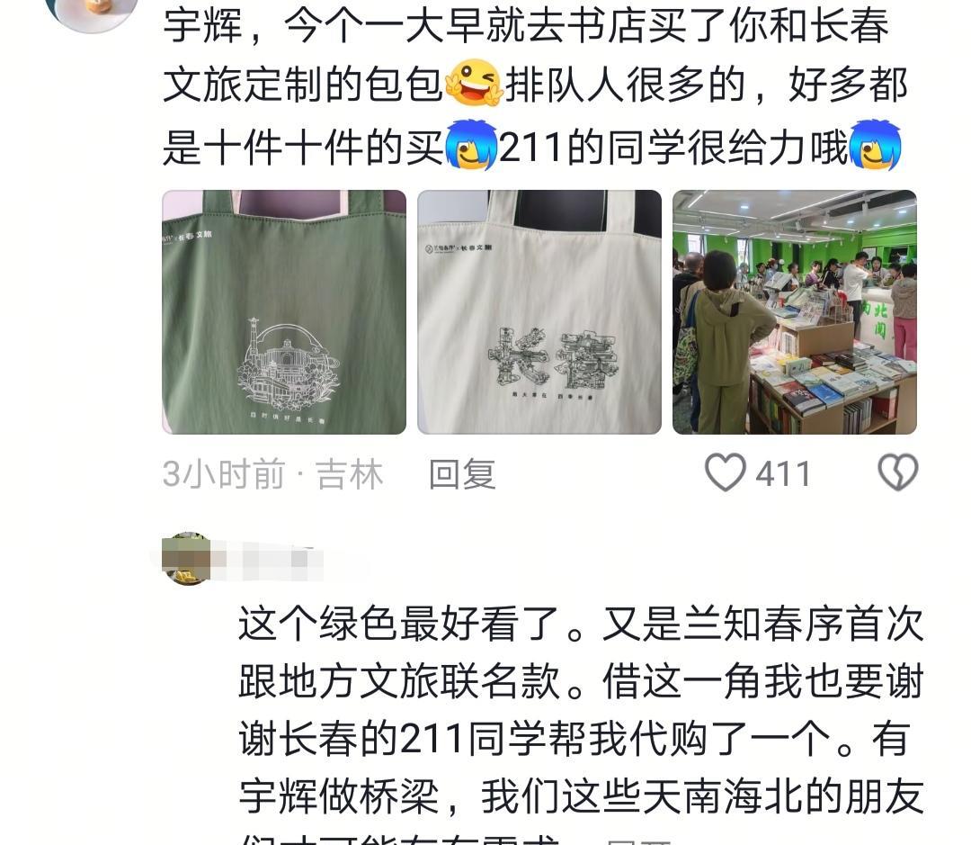 今天不光与辉同行的朋友生气了,连各省文旅也闷闷不乐,有人问,为啥? 你去看看长春文旅和长春朋友的分享,那个定制款包包,多少人眼巴巴看着,想买买不着,恨不得立马飞过去。 今天长春文旅全网独一份,董宇辉为他们量身定制,设计出专属图案,把长春的特色建筑、人文地理,一一融入进去,包包开售就爆单,目前现货没了,只能预售。 这可是和地方文旅合作首创,其它省文旅都急了,凭啥呀?我们也需要。 最关键的问题是,目前只能线下买,还断货了,与辉同行这么多朋友还没买到了。 今天现场有人反映,长春的朋友好多一次买十几单,不知道是来进货还是别人委托帮买? 你们说说,这看得见摸不着,不气才怪。董宇辉说的患寡而患不均,可不是白说,长春文旅你得听进去呀。 #董宇辉# #长春文旅号#