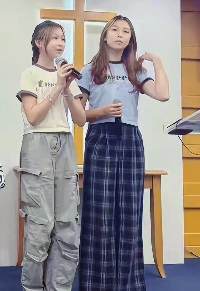 蔡少芬全家教堂献唱!俩女儿像妈显清纯,儿子复刻张晋帅气,这基因分配绝了![比心] 有网友偶遇蔡少芬一家五口在教堂献唱,画面温馨到冒粉红泡泡!蔡少芬染红发穿格纹裙,14岁大女儿身高直逼170cm,五官神似妈妈年轻时的灵动;12岁二女儿戴牙套笑出小梨涡,性格活泼得像小太阳。最抢镜的是6岁儿子张乐儿,浓眉大眼和张晋一个模子刻出来,在台上蹦蹦跳跳做鬼脸,妥妥的“小张晋”!其实这不是蔡少芬第一次带娃公开献唱了。她和张晋信教多年,连怀孕时都常唱赞美诗给孩子听。这次张晋虽因信仰不同没唱,但全程站在儿子身后当“人形支架”,眼神里全是父爱。[比心]
