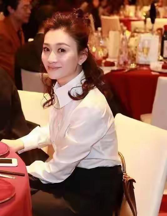 最近行业聚会上,李小冉和老公徐佳宁的合影里,47岁的她穿件白衬衫配黑色半身裙,半