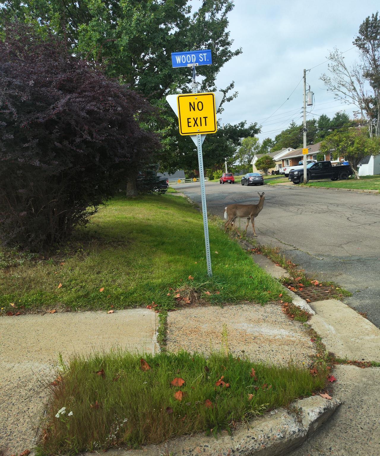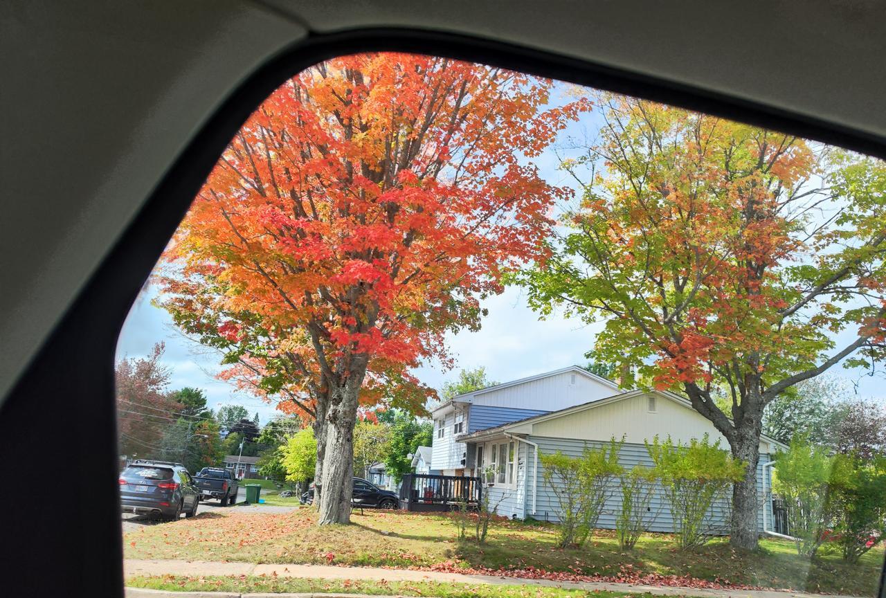 看看,我们今天与三种小动物来了个亲密接触。 今天孩子给我们来了个难度低一点儿的拉练,回来也累瘫了。开车出去一个多小时,到了个大山里。 进山时,偶遇小鹿,不怕人也不怕车,慢悠悠的过马路。 出山时,一只猫头鹰在头顶呼啦啦掠过,落在树上,盯着我们,很配合,任凭拍照。 山外是一座水库,今年干旱严重,水位下降很多。遇到好多加拿大鹅。我这么多次来,还是第一次见到。这鹅个头确实不小。孩子不让靠近,说是很凶。 秋天来了,树叶开始变色了。树林马上就变成调色板了。