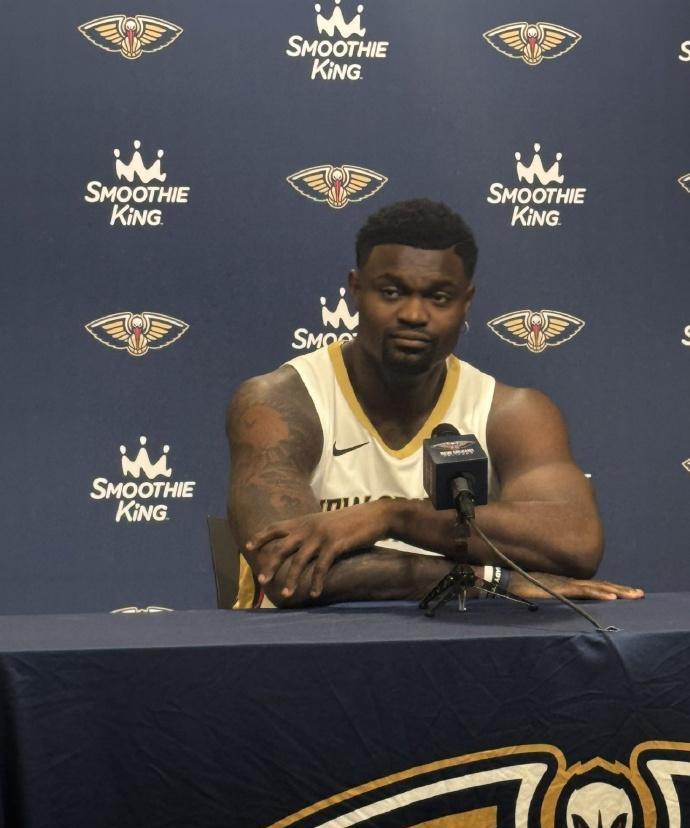 这是锡安?怎么瘦成这样了? 鹈鹕新赛季第一场发布会,锡安一亮相,就把现场记者很惊