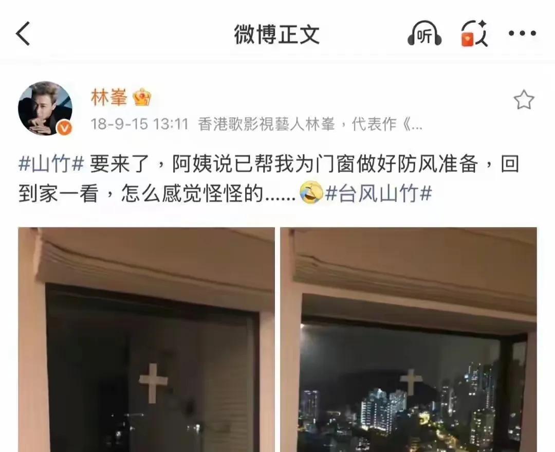 谁能想到,谢霆锋广州演唱会上一句玩笑话,竟然一语成谶:“我是谢霆锋(停风),不是谢停雨……” 有网友受这句话启发,在深圳台风天之际,除了在自家玻璃上贴了米字外,还特意贴上了一张谢霆锋的照片,美其名曰“停风”! 谢霆锋本人看到了估计都要说声你真有才! 和这人一样有才的还有林峰家的保姆,2018年那次台风,她只在林峰家的窗户中间贴了一个小小的十字,主打一个意思到了,效果就管不了了! 台风天,也是被大家玩坏了!
