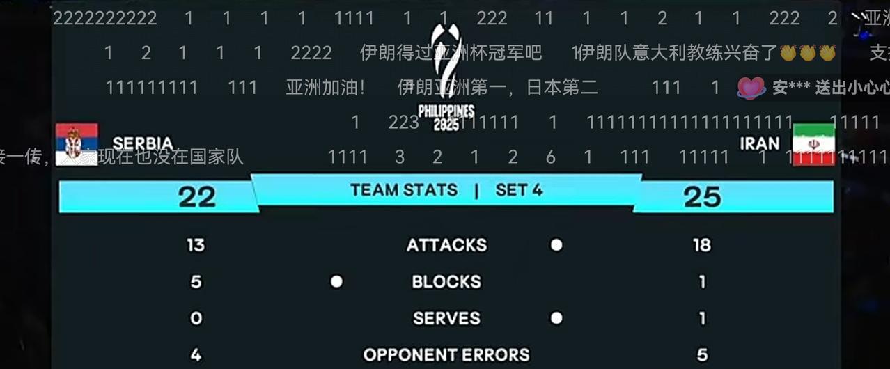 伊朗男排进攻能力还真是不弱啊! 世锦赛1/8决赛,伊朗男排第四局25:22胜塞尔维亚男排,伊朗男排把比赛拖入决胜局了! 决胜局伊朗男排能控住失误,估计还有戏!