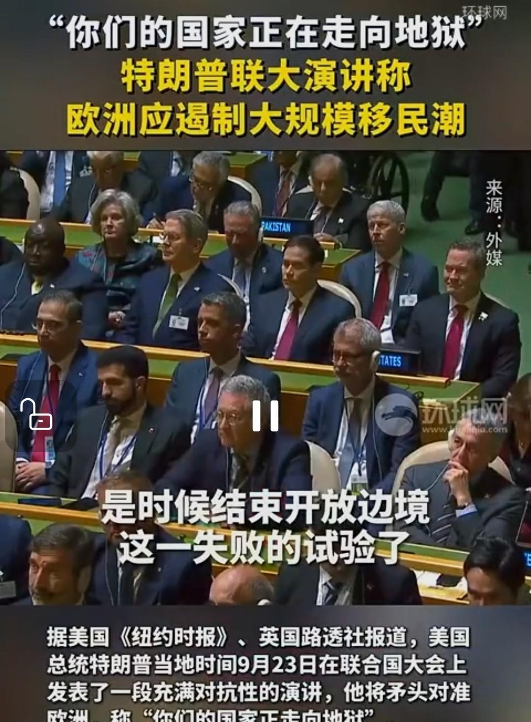 特朗普“火力全开”在联合国代表大会上:骂了个遍! 1:提词器,轮到特朗普演讲时坏了:特朗普表示操作提词器的工作人员 你逃不掉! 2:电梯坏了,特朗普痛责联合国管理混乱,如果联合国大厦翻新工程交给特朗普承包的话,这一切都是耳目一新! 3:痛骂欧洲国家:你们的国家正走入地狱!如果移民问题再不管理的话。 4:美国退出《巴黎气候协定》的正确的,因为气候变化是一场“骗局”,绿色能源是自杀政策! 5:痛责联合国工作人员 不知每天都在干什么,世界上的大事都是美国政府在干,为此联合国是一个无效的组织! 6:指责中国与印度是俄乌冲突的最大协助国,正因为购买了俄罗斯石油帮助了俄罗斯! 特朗普更像一个泼妇骂街一样,在联合国大会上 对全世界开炮,并自诩特朗普才是解决世界危机的主要功劳者,而联合国机构是一个过时无效的组织,而世界其它国家没有做对任何事情,只有美国是做正确的事,叫停了战争,降低了世界冲突。所以美国才是真正伟大的国家! 特朗普以这种“不要脸”的方式,对付全世界,只能说脸皮厚到无法再厚了。对于加沙地区的人道主义,美国投反对票,让以色列继续屠杀加沙民众,以色列对卡塔尔军事入侵美国当旁观者,以色列美国入侵伊朗这事更是不提,而美国对世界的对等关税,破坏了世界经济规则让许多国家陷入了经济发展困难,这难道是美国给世界的恩赐?所以特朗普在联合国这种发言实大让全世界无法理解,世界动乱之时,美国就是祸害者,但特朗普认为美国是功劳者!