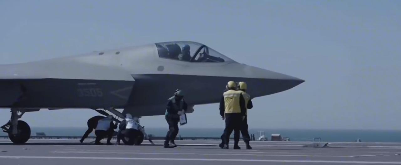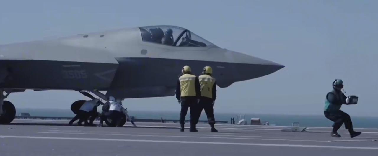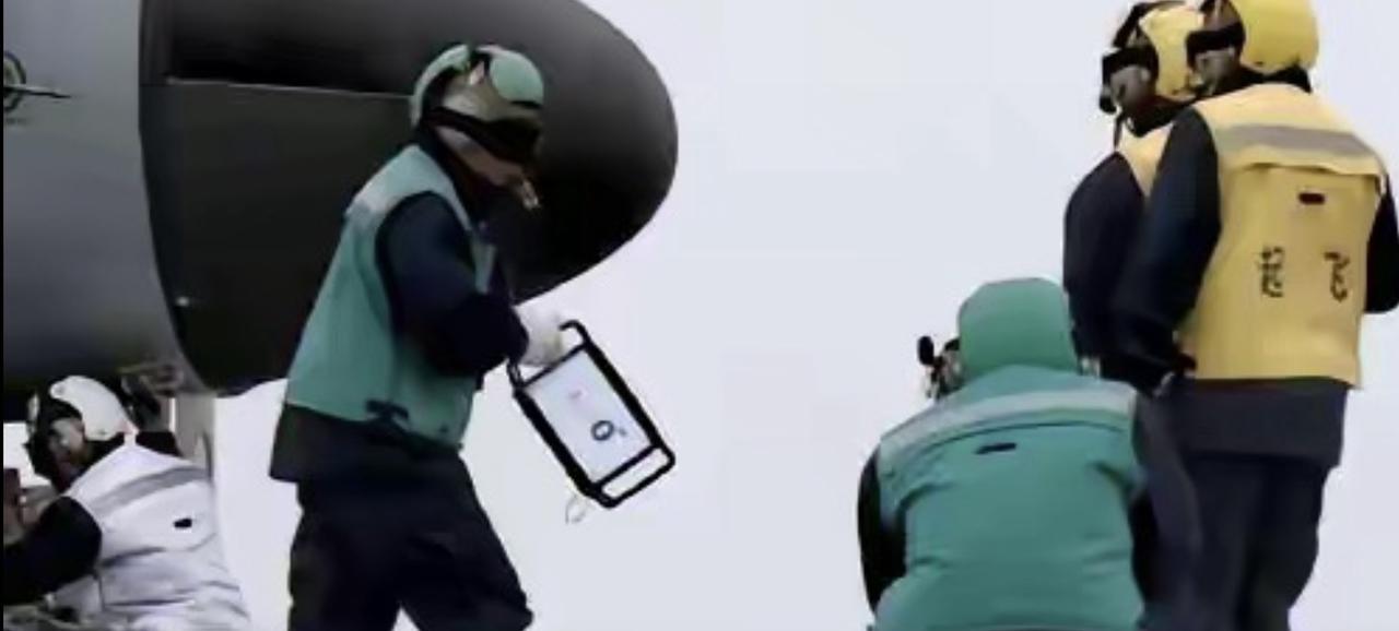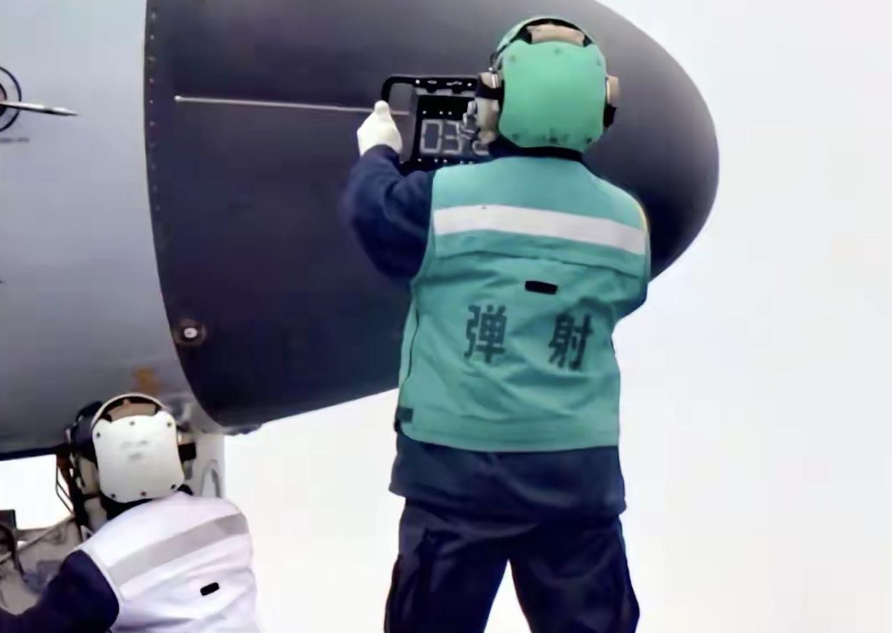 福建号航空母舰上,各型舰载战机进行电磁弹射前,多了一名弹射工作人员,手拿电子显示