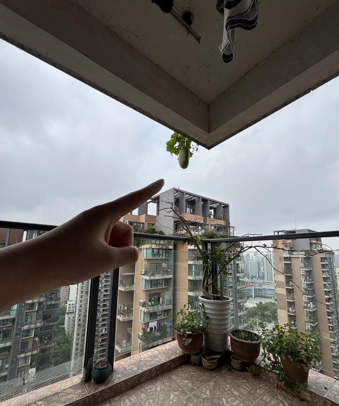 重庆一位网友太搞笑了! 他家住30楼,楼上邻居在阳台种菜,有一个西瓜刚好长在他们