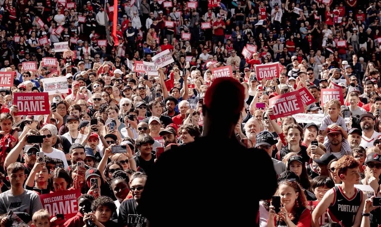 #利拉德# 开拓者为利拉德举行了回家欢迎仪式。 利拉德为球队效力10+年,奉献