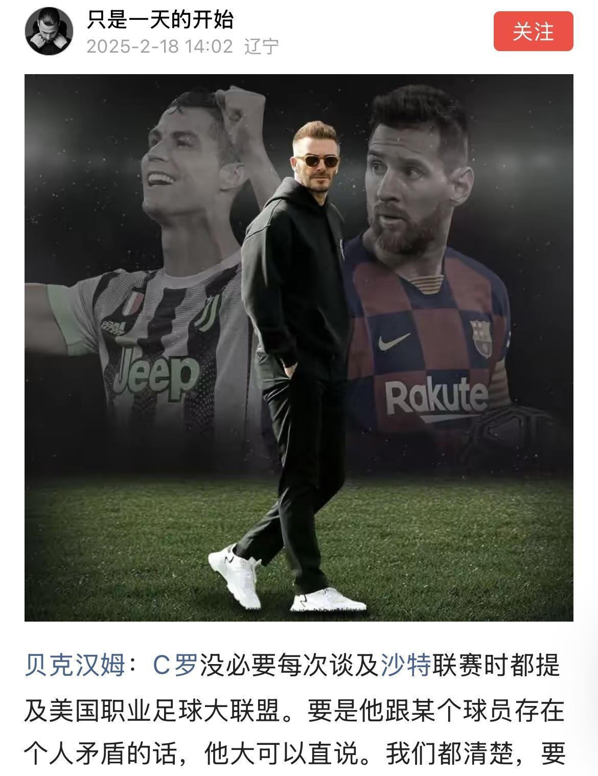 C罗粉丝:梅西就是顺风行球员。 可笑的是,他的头像是贝克汉姆。正是贝克汉姆把梅西