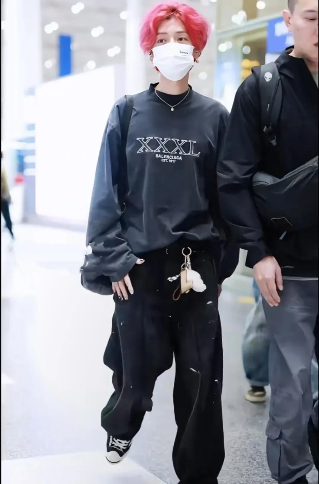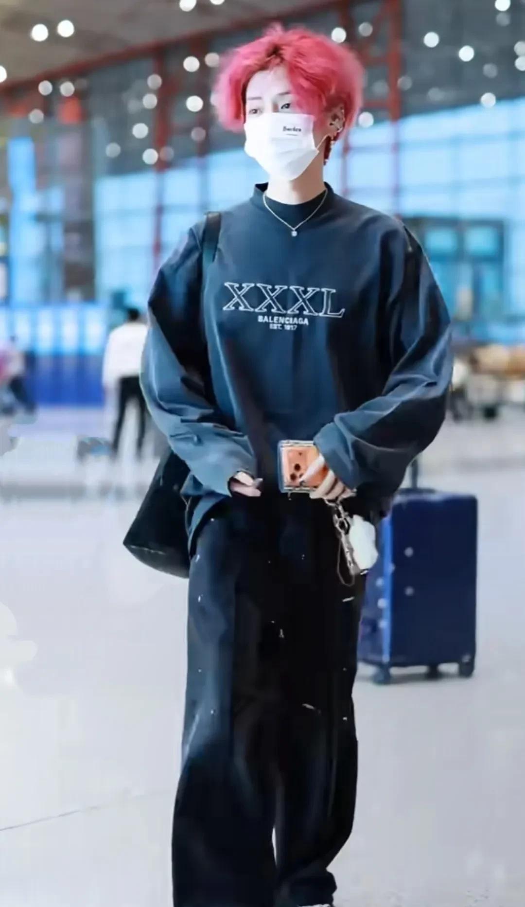 鹿晗现身北京机场,动身前往新加坡演唱会。 他满头红发穿着卫衣阔腿裤,脚踩帆布鞋,