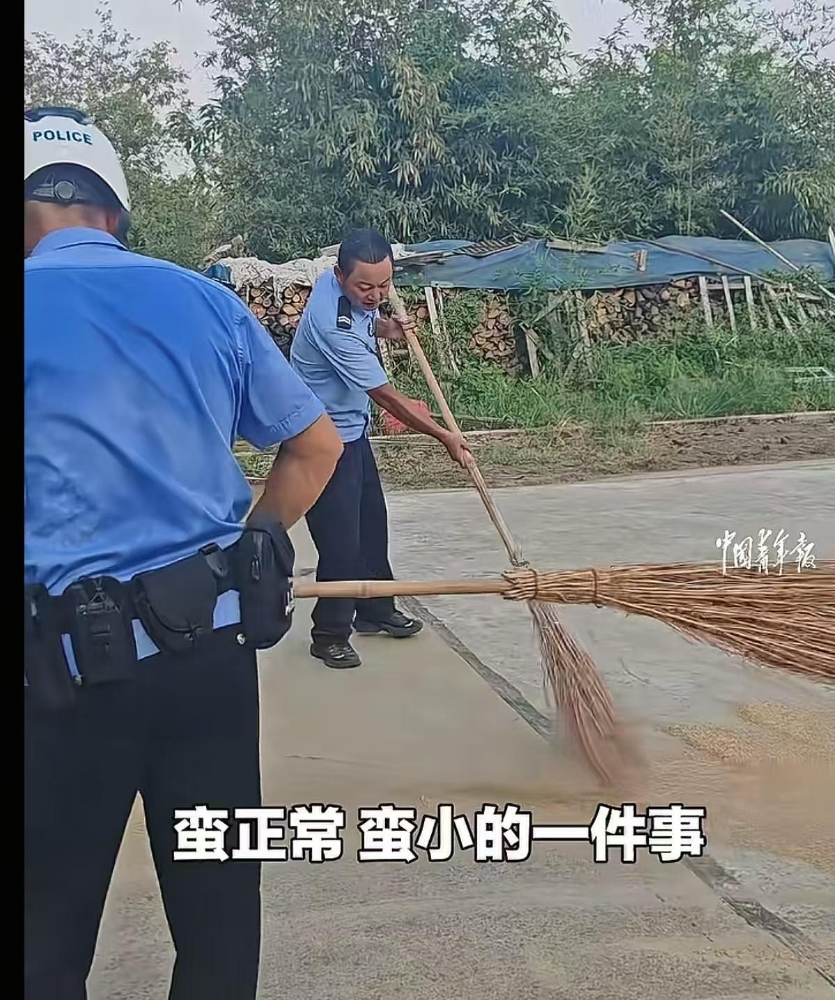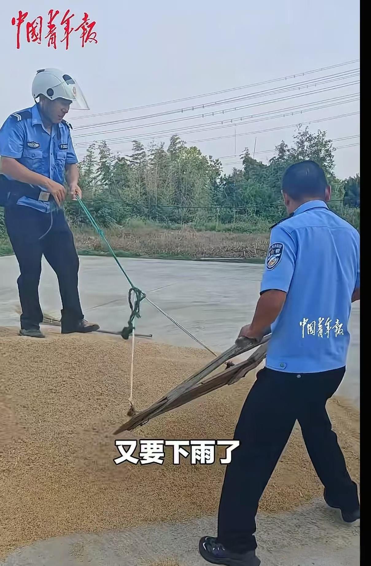 “这群辅警火到中国青年报!”湖北荆门,辅警巡逻时,看到两名七旬老人在院子里吃力地收稻谷,而暴雨马上要来临!他们主动上去帮忙,把老人感动的都快哭了!网友:什么是人民警察?这两个就是为人民服务的警察! (来源:中国青年报) 这天,辅警李涛和同事骑着车在村里巡逻。当他们路过一间农房时,看到两位老人正吃力地在院子里收着稻谷。 老人腰疼,每弯一会儿腰,就得用手吃力地扶着,直起腰来站半天。 李涛看着老人艰难的模样,心里一阵酸涩。这么大岁数的老人,本该安享晚年,却还要辛苦劳作。 再瞧瞧天上,乌云正渐渐聚拢,一场大雨似乎随时都会倾盆而下。 按照老人的速度,这稻谷肯定要被淋湿!李涛没有丝毫犹豫,立刻朝同事喊道:“走,咱上去帮老人收稻谷!” 老人怎么也没想到,辅警会主动来帮助自己,顿时受宠若惊! 李涛和同事拿起工具,就热火朝天的干起来。汗水顺着他们的脸颊不停地流淌,浸湿了衣衫,但他们没有一个人喊累。直到把院子里的稻谷全部收完,李涛他们才准备离开。 老人看着他们满头大汗的样子,想起家里有孩子给自己买的矿泉水,自己一直舍不得喝,连忙小跑着回屋,把水拿了出来,递给李涛他们,嘴里不停地说着:“快喝点水,解解渴,谢谢你们,真是太谢谢你们了……” 说着,老人还深深地鞠了一躬。看着老人脸上洋溢着的感激笑容,李涛和同事们的心里也暖乎乎的。 李涛和他的同事们,用实际行动诠释了什么是为人民服务,他们的善良与热心就像冬日里的暖阳,温暖着每一个人的心! 这才是咱农民老百姓,心中的人民警察!这些好警察。值得咱老百姓尊重!值得我们敬爱!