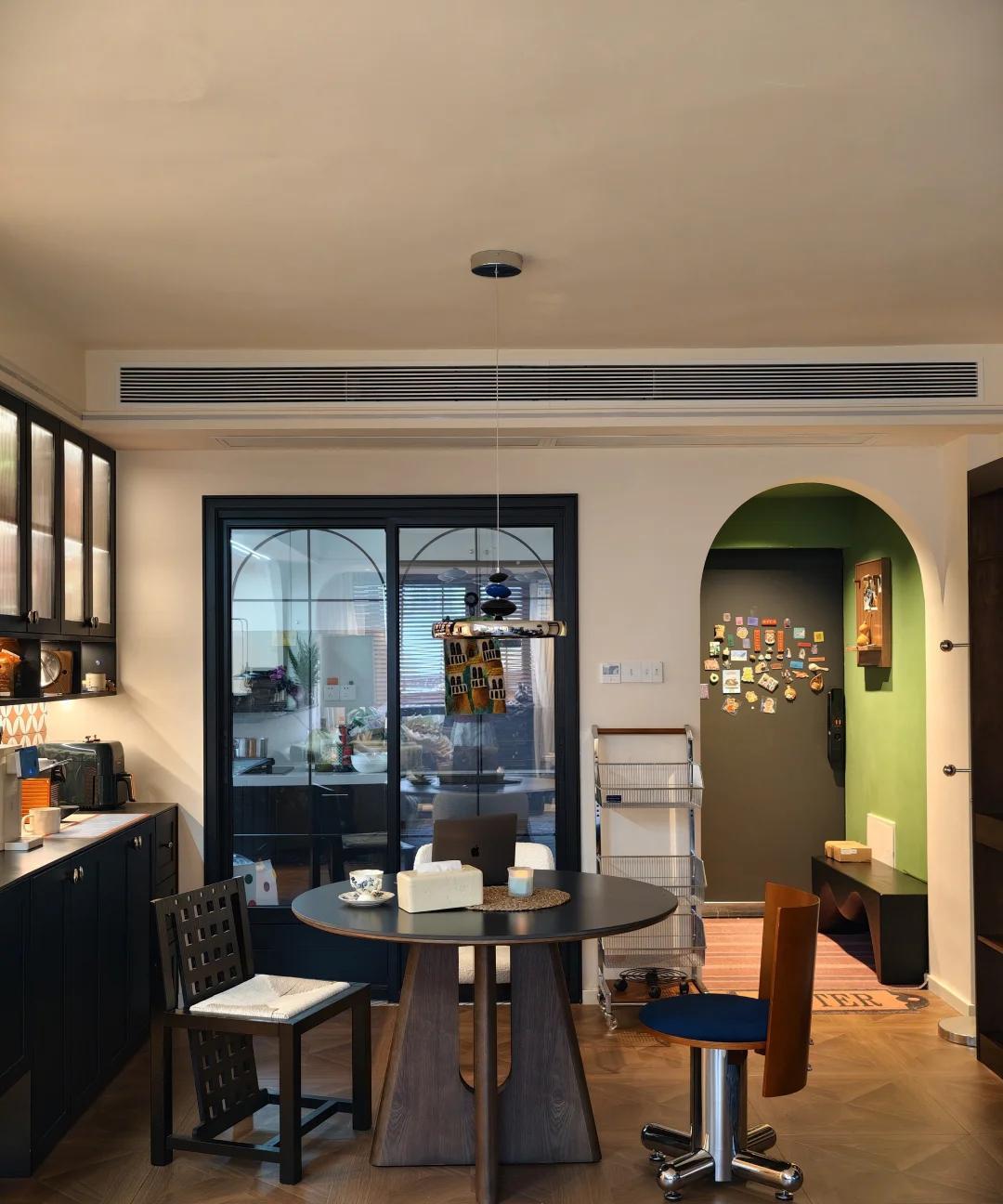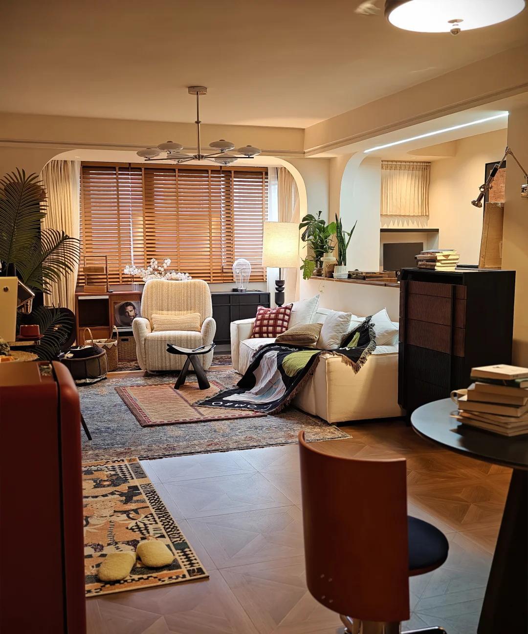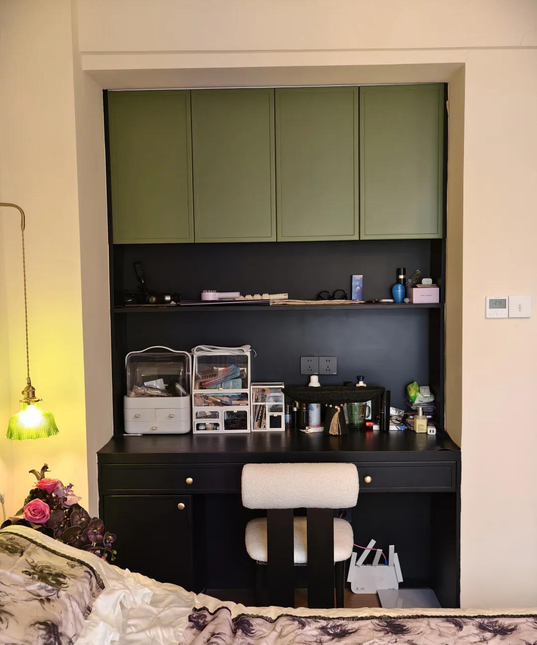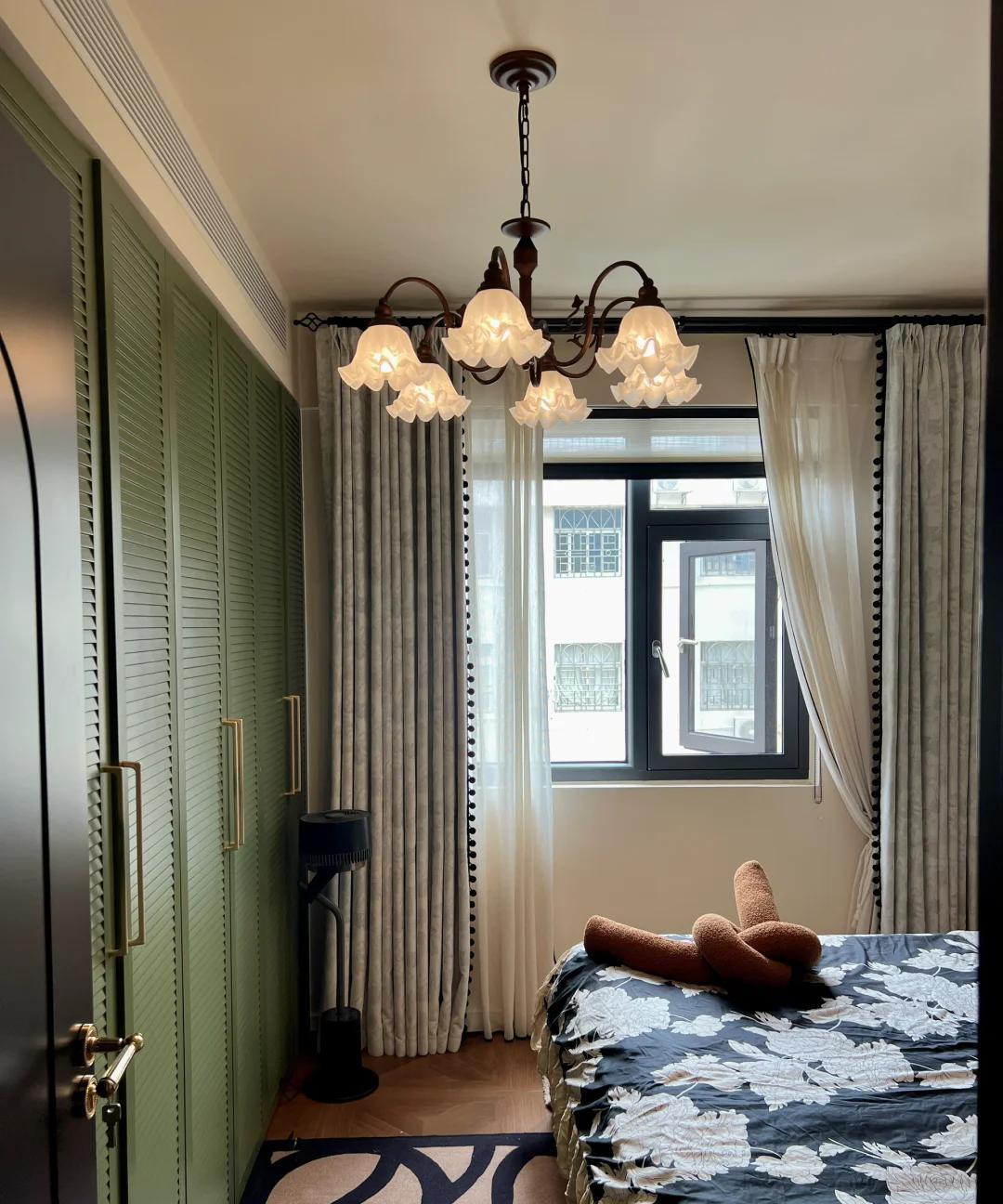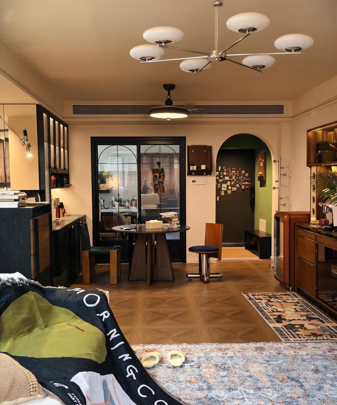 感谢这套88㎡小宅,“桦加沙”来了也不怕! 广东的朋友@菜菜晒出家居生活照,全屋采用美式中古风,在软装加持下,堆砌出一场视觉盛宴,给人满满的安全感,连邻居看了都赞不绝口。 她将阳台面积纳入客厅,与餐厅形成日常轨迹的交汇点,让沙发区、就餐区和阅读区等空间,不是被“安排”使用,而是自然被“生活填满”。 5㎡的书房设置在沙发背面,采用半墙处理,增加采光的同时,视线也更加通透,太机智了。 卧室面积约10㎡,铃兰吊灯的使用,给空间增添了一份田园气质,搭配绿色衣柜、深色床架和植物床品,呈现出电影般的效果。 你喜欢这样布置的家吗? #秋日生活打卡季#