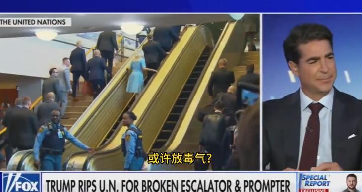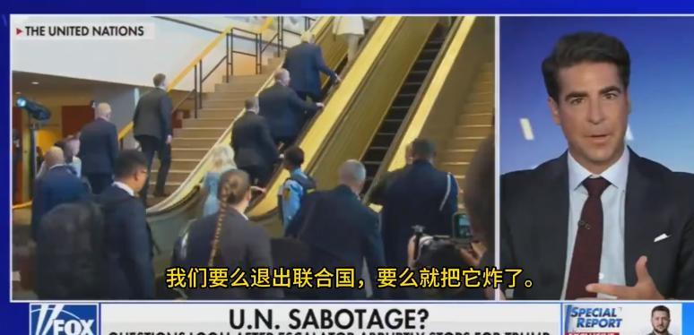特朗普“受辱”后,美媒提议轰炸联合国总部,或者用化学武器 昨天(9月23日),特朗普的“联大之旅”可谓是洋相百出,先是扶梯正好在特朗普踩上的前一刻发生故障,导致快80岁的老头只能艰难“爬楼”。后来演讲刚开始时提词器又坏了,无奈的特朗普只能在剩下的57分钟里“胡言乱语”,狠狠地丢了回人。 眼见主子受辱,福克斯新闻的主持人杰西·沃特斯直接将此事定性为是一场“叛乱”,还直言“要么我们退出联合国,要么直接让美军把总部大楼给炸了”。 听了这句“癫人癫语”,一名嘉宾不可置信地说道:“可联大总部在纽约啊”。这话直接让整个演播室笑成一团,杰西也承认轰炸确实可能会波及纽约,不过他立马又补充道:“那我们用毒气”。 特朗普在联大出丑后,不少美国人认为这是一场有针对性的“阴谋”。但实际上,提词器是由白宫自己的技术人员负责的,怪也怪不到别人头上。扶梯事件的原因也已经查明,并不是发生故障,而是已经上到扶梯顶部的摄影师误触了防止人员被卡的安全装置(紧急制动)。 讽刺的是,特朗普骂联合国“无用”,设施还陈旧,但欠着几十亿会费不交的是美国,恃强凌弱阻碍联合国行使职能的也是美国,这不是典型的贼喊捉贼吗?#晒图笔记大赛#