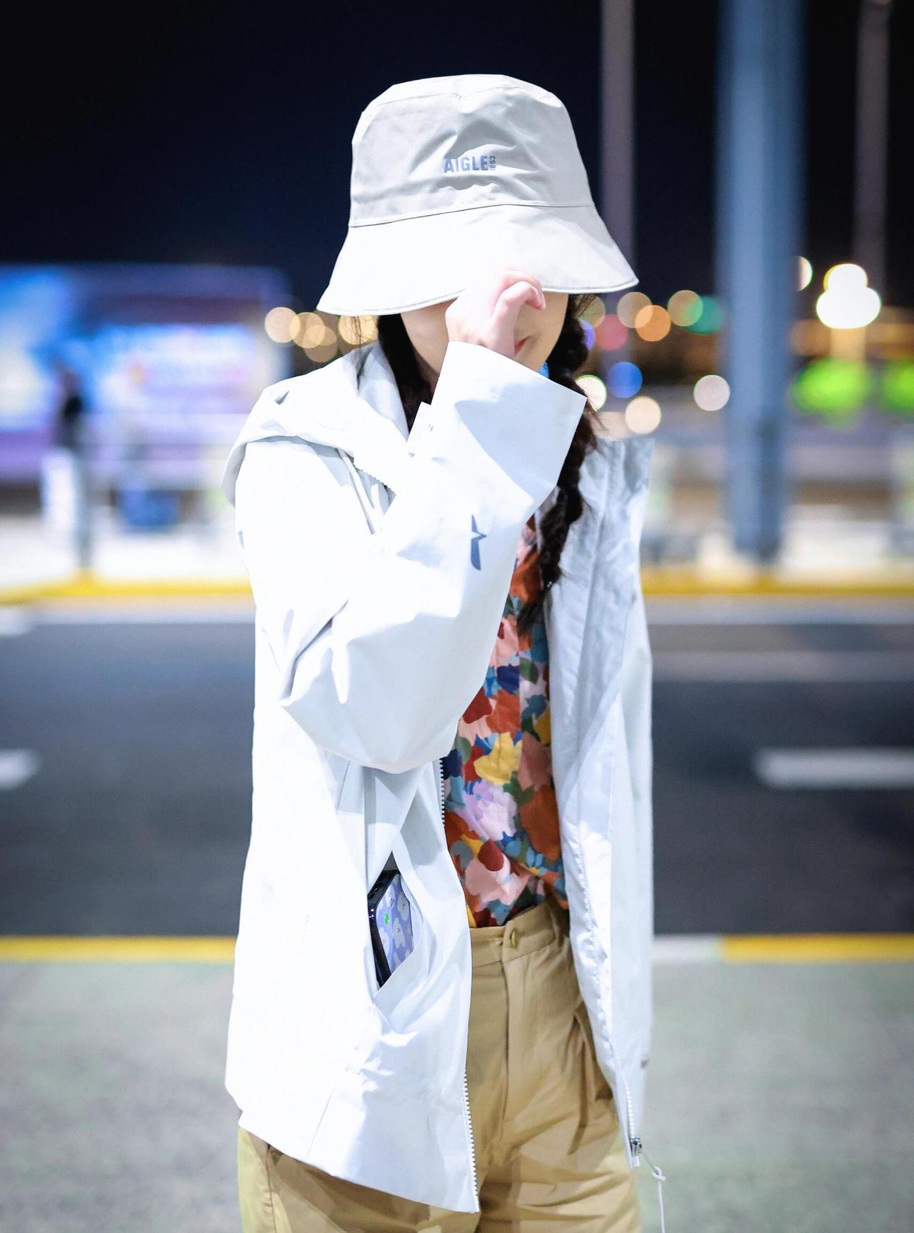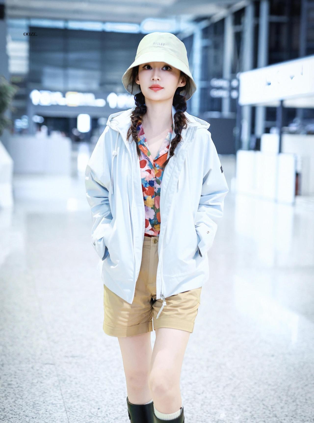 李沁真的很会搭呀! 这次街拍穿了花衬衫配卡其色短裤,再加上长筒靴,看似完全不同风
