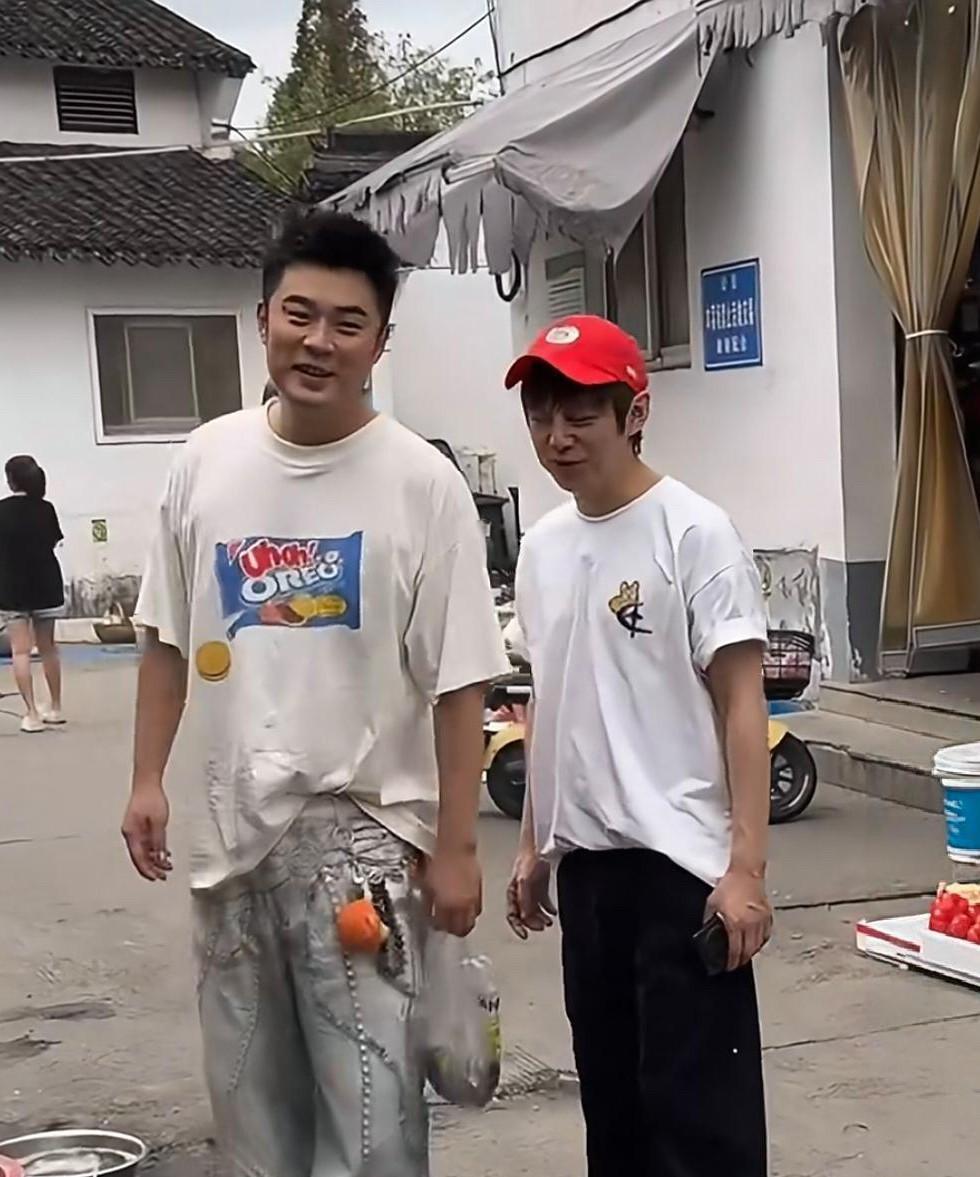 何炅陈赫菜场下农村买菜! 现身浙江农村菜场买菜,陈赫穿件Oreo印花白T,配条满