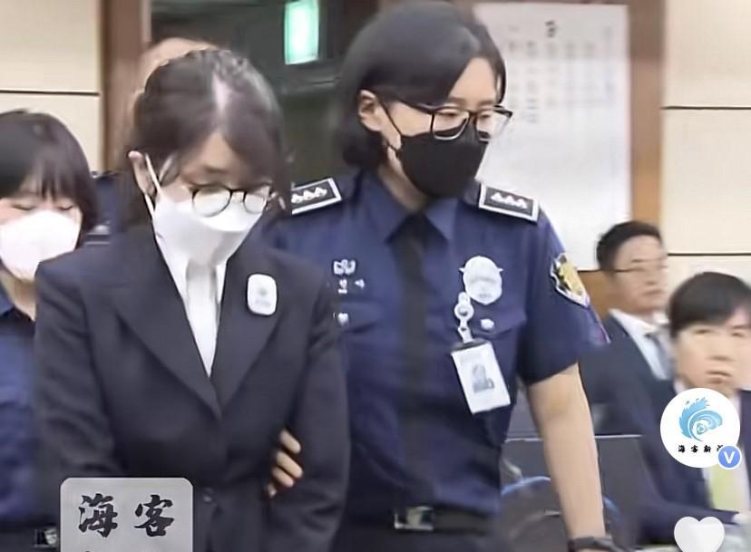 金建希首次出庭受审画面曝光! 金建希涉贪腐案今日开庭,被法警带入法庭,没戴手铐没