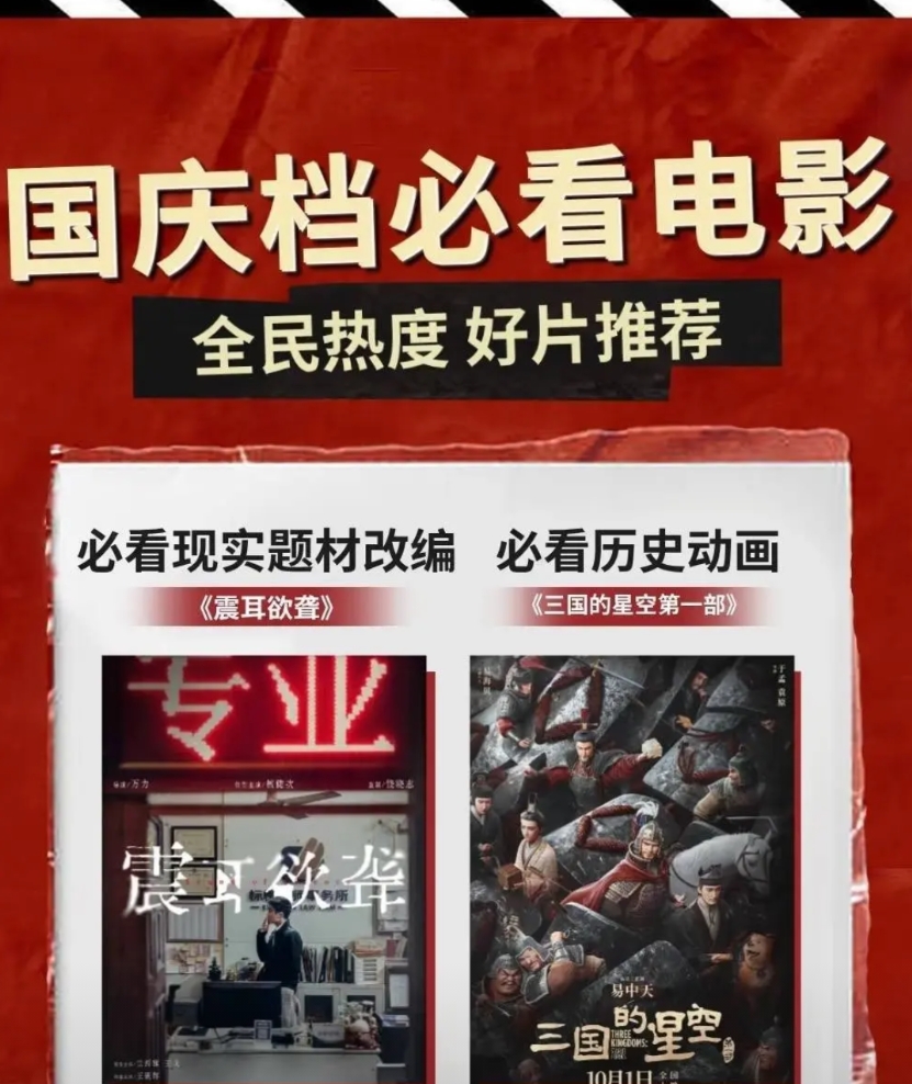 感觉檀健次的粉丝这个十一假期会过得充实又惬意!檀健次一人参演两部电影,让观众在这个假期享受极致的视听盛宴。愿《三国的星空》与《震耳欲聋》两部电影口碑票房双爆!