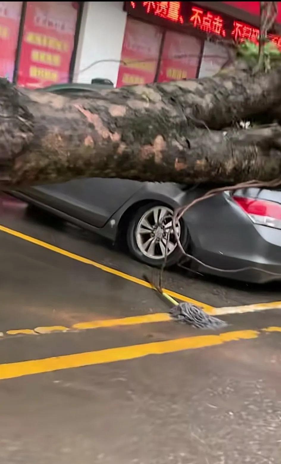 你们那里还好吗? 台风真的到阳江来了,现在外面还在呼啸着狂风,我的车子现在就停在树底下,现在外面风很大也不敢出去看。 刚看到同城的人发了这样一个视频,顿时心里凉飕飕的,毕竟像这样一棵大树都被吹倒了,我的车子估计也没能好到哪里去。 这个停银行门口的老哥,也是运气差了点啊,谁又会想到这么大的树都扛不住这台风,车子被这样一压,离报废不远了。 我这里现在是广东阳江,这个风已经吹了快两个小时了,还是这么大一点没有减弱的迹象,你们那里怎么样了?[泪奔]