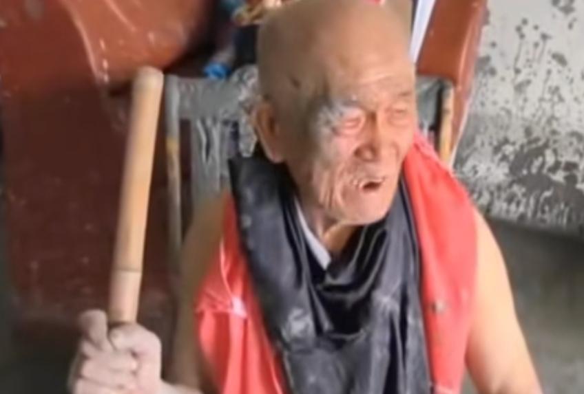 中国台湾花莲县光复乡一名86岁的老阿公是独居老人,这次马太鞍溪上游堰塞湖溃堤后,