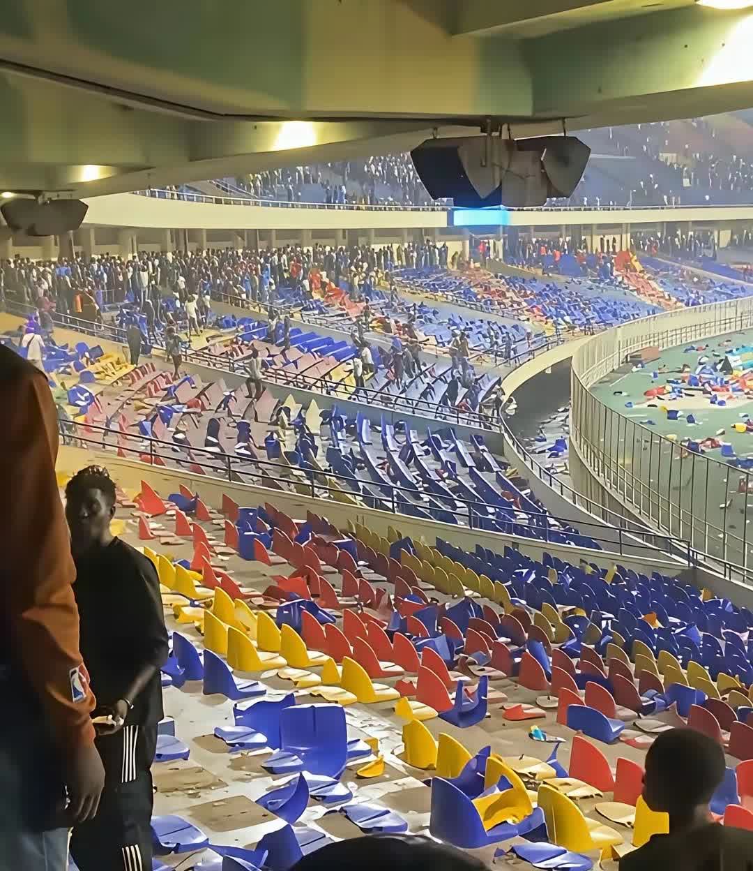 非洲某国的足球场馆,听说还是东大援建的。黑人不满判罚闹事,直接把座椅给破坏了扔到足球场里,这操作真是把外人惊呆了。放眼全世界看球这么危险的也就在非洲了吧![笑哭][笑哭]