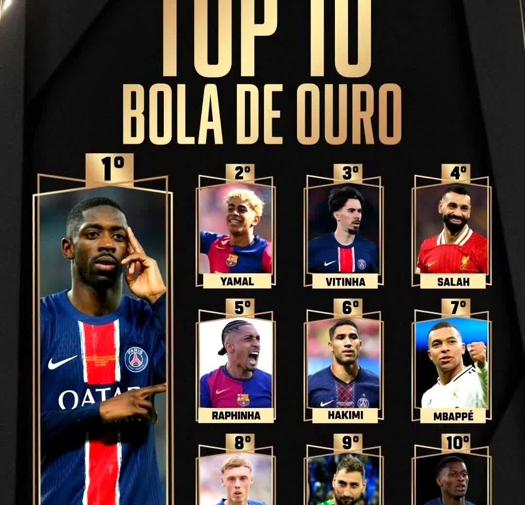 登贝莱第一没啥疑问,第二是亚马尔吧?他和拉菲尼亚荣誉基本是一样的,那就比一比呗?如果拉菲尼亚真的是更优秀的那个,那他就应该排在亚马尔前面。