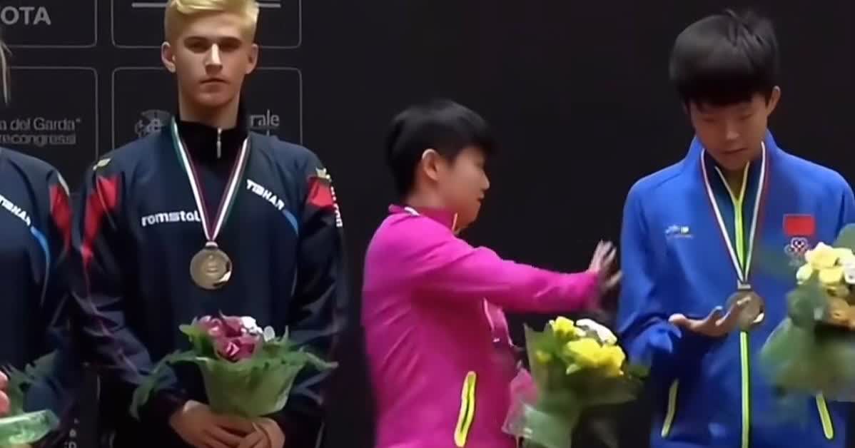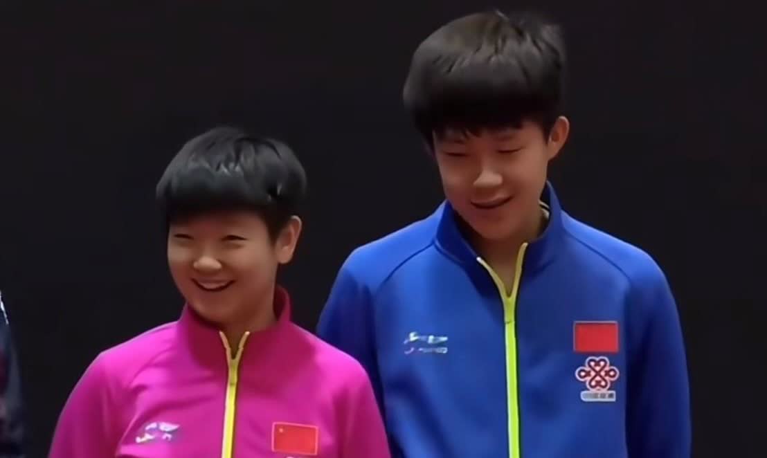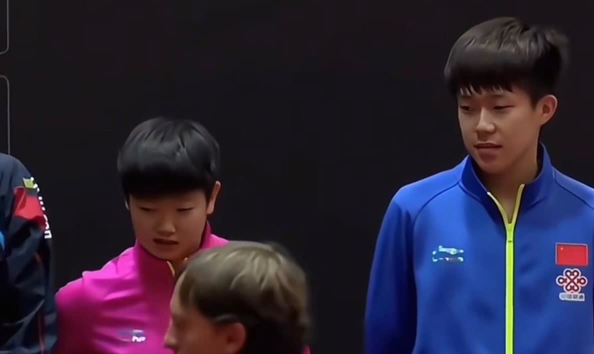 彼时孙颖莎和王楚钦声名尚未远播,混双赢得季军。颁奖台上,王楚钦看到孙颖莎看着冠军