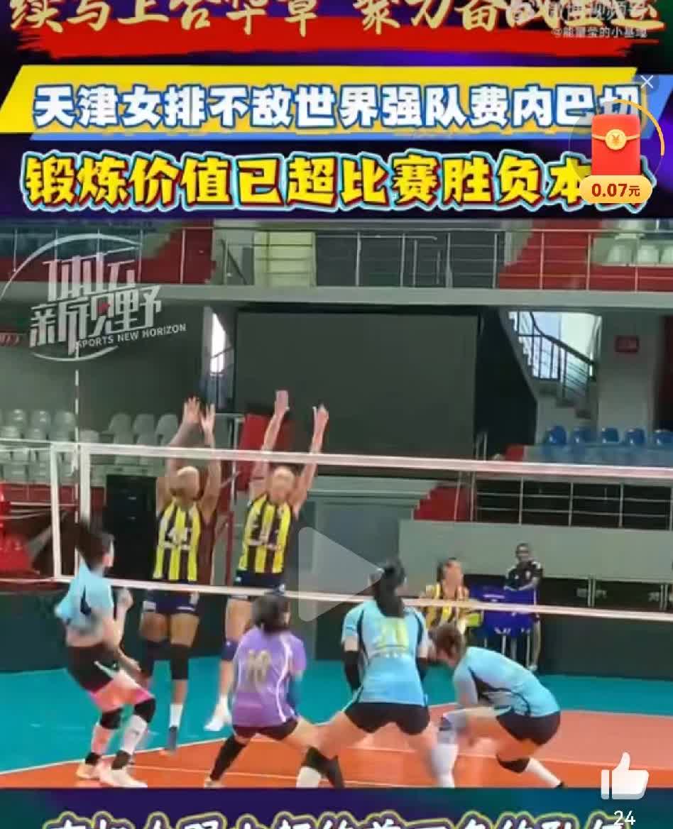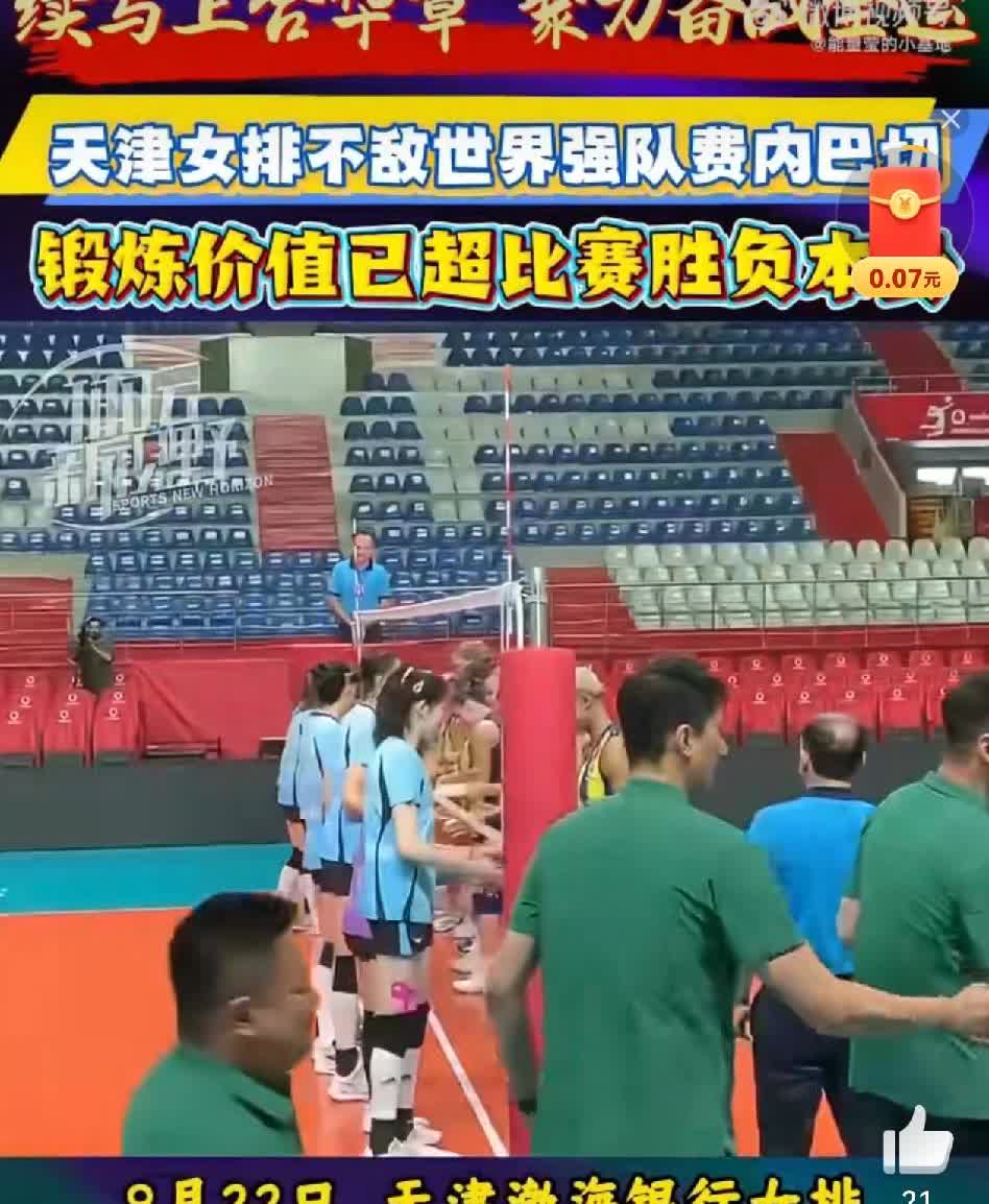天津女排昨天晚上进行了土耳其训练比赛的第二场比赛,对阵费内巴切女排,费内巴切女排派出几乎最强阵容包括接应:瓦尔加斯、主攻:费多罗夫彩娃、副攻:科尔内鲁克、二传:奥罗等世界级球员。天津女排也派出最强阵容:李盈莹、袁心玥、姚迪、王媛媛、王艺竹、陈博雅,最后以0-3告负,三局比分分别为:19-25、22-25、20-25。 主教练陈方赛后说:有机会和土超强队过招,我们很高兴,今天通过和费内巴切优秀的队员比赛得到了锻炼。 天津女排此次训练比赛的价值超过了胜负本身,与世界顶尖强队的真刀真枪对抗将为球队后续征战全运会积累宝贵经验。