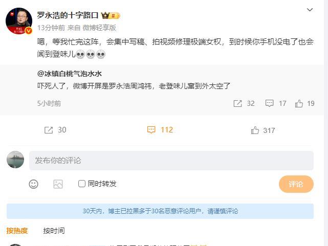 罗永浩说要修理极端女权! 9月24日,罗永浩在回复网友留言时表示:等忙完这阵,会