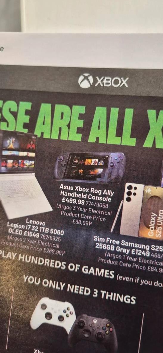 微软尚未正式公布ROG Xbox Ally的价格,但来自英国零售商Argos的最新泄露提供了线索。 根据这份促销材料,ROG Xbox Ally的售价为£499.99。虽然这个价格不出意外,但与之前的预期相比,可能会略有降低。 根据3DJuegos的报道,西班牙的一家Asus合作店铺显示,ROG Xbox Ally的价格为€599,而ROG Xbox Ally X的价格为€899。经过换算,英国的价格大约为£523和£785。 对于美国市场,YouTuber Destin Legarie分享了Best Buy的照片,显示ROG Xbox Ally Ryzen Z2和Z2 Extreme的售价分别为$549.99和$899.99。 #头号创作者激励计划#