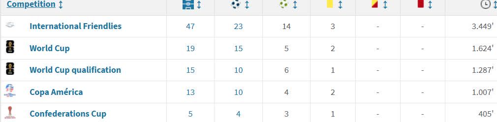 五星巴西队史射手王竟然不是大罗、贝利、罗马里奥,而是他! “桑巴军团”进球排行榜如下: 5、济科 48球; 4、罗马里奥 55球; 3、大罗 62球; 2、贝利 77球; 1、内马尔 79球; 进球的具体分布如下: 济科: 友谊赛:30球; 世界杯:5球; 世预赛:11球; 美洲杯:2球; 罗马里奥: 友谊赛:22球; 世界杯:5球;世预赛:11球;美洲杯:7球; 金杯赛:3球;联合会杯:7球; 大罗: 友谊赛:23球; 世界杯:15球;世预赛: 10球;美洲杯:10球;联合会杯:4球; 贝利: 友谊赛:51球;世界杯:12球;世预赛:6球;美洲杯:8球; 内马尔: 友谊赛:46球; 世界杯:8球;世预赛:16球;美洲杯:5球;联合会杯:4球; 各位老铁认为哪位球星的进球含金量高呢?