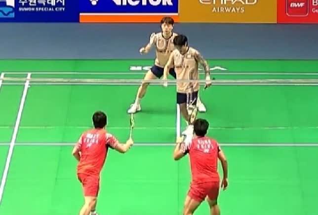 2025年韩国羽毛球公开赛,男双1/16赛任翔宇/谢浩南21-8,21-19战胜