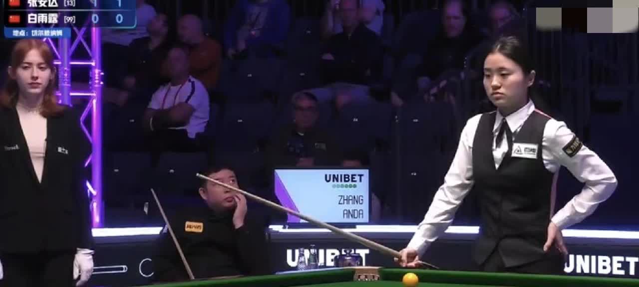 张安达今天被“美女”包围! 北京时间9月23日,斯诺克英国公开赛第一轮,张