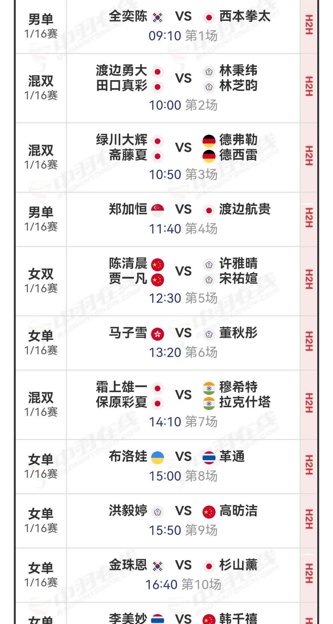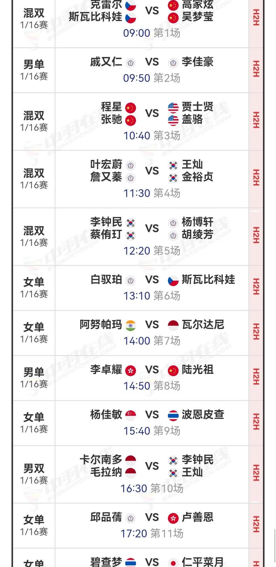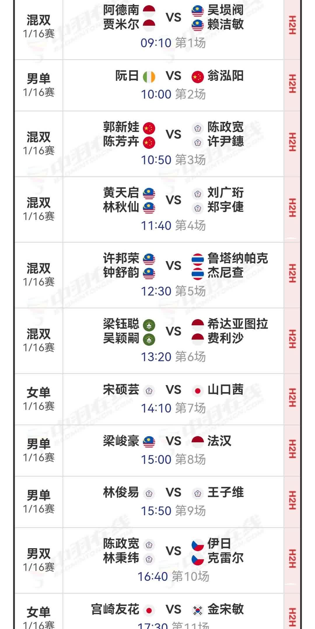 9月24日韩国羽毛球公开赛1/16决赛(二)安排 今日作为赛事首日,国羽成