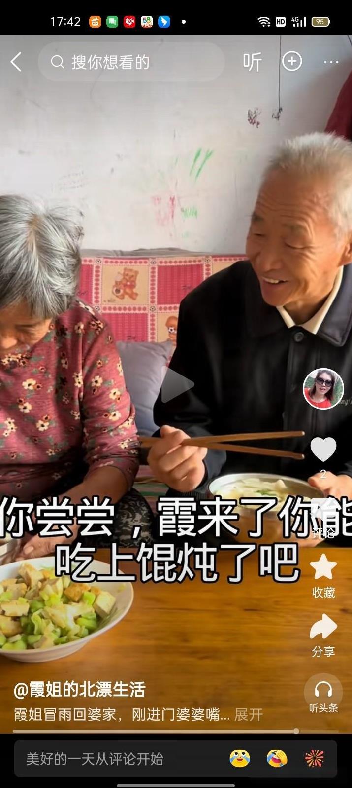 霞姐需要流量赶快去看婆婆,她婆婆还是很了解她,知道她也不想给婆婆干活,下雨来了应