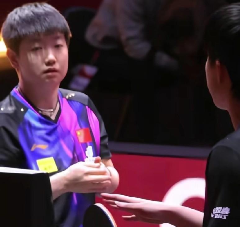 原来担心会从眼神里溢出来! 莎莎就在那静静的看着大头去和裁判说拍子“开裂”的事情,l看大头无奈摇头! 莎莎的眼里满是担心,但没说话也没看拍子,就是这样静静的看着大头,两只手在不停的搓着! 她在看大头的反应,她担心去年的一幕再次上演! 有人说,莎莎那天就是王楚钦拎个“锅盖”上去,她也要带着他赢下比赛! 因为她知道这场比赛对他来说多么的重要,她必须赢下这场比赛! 这次比赛结束以后,大头开玩笑说以后得带5块板,即便这样他从未说过要放弃! 俩孩子就是这样,所有的委屈自己吞,为了胸前的国旗永远大于背后的名字,为了梦想! 他们选择无怨无悔! 愿接下来的日子,所盼皆所期所愿皆所得,所行皆坦途!