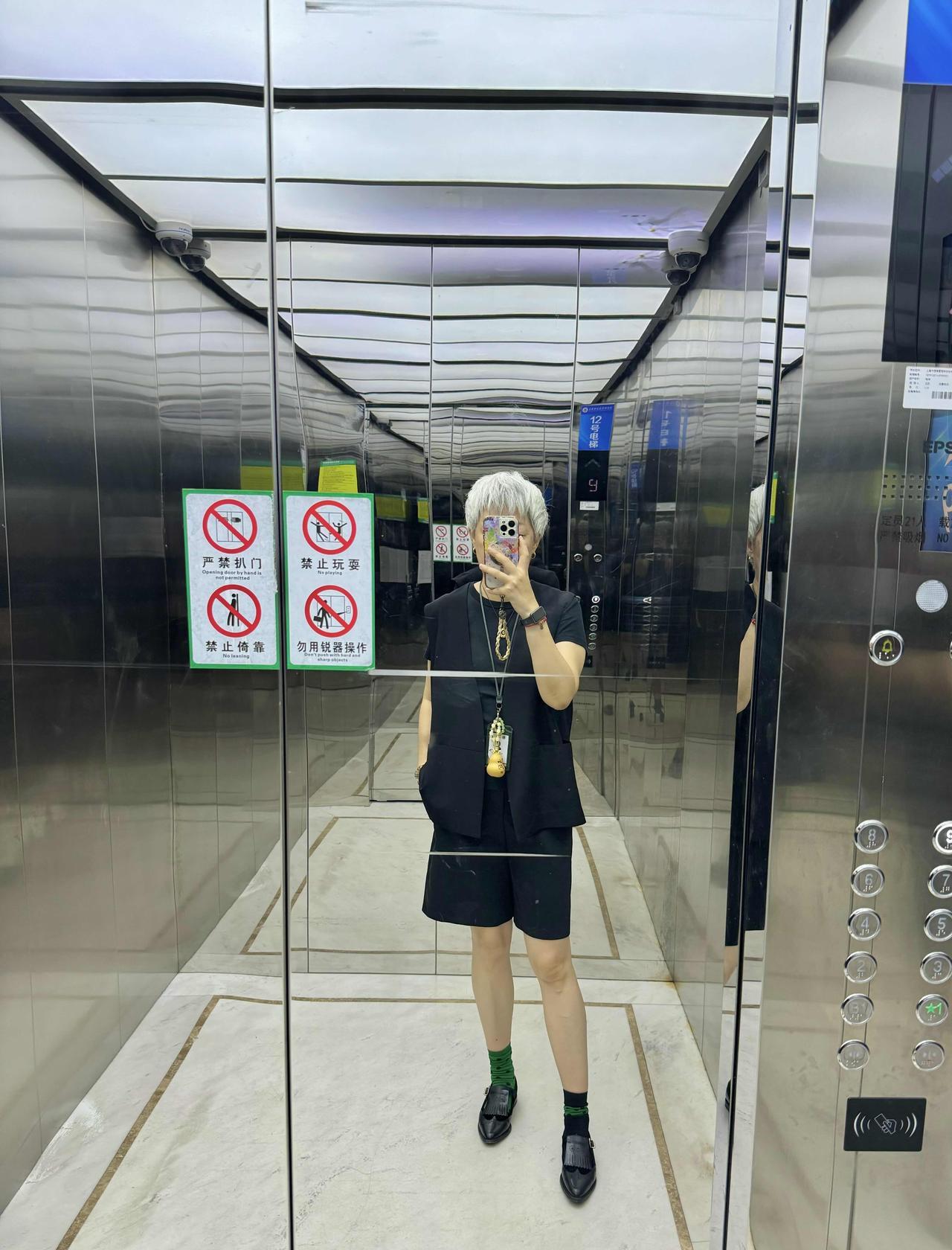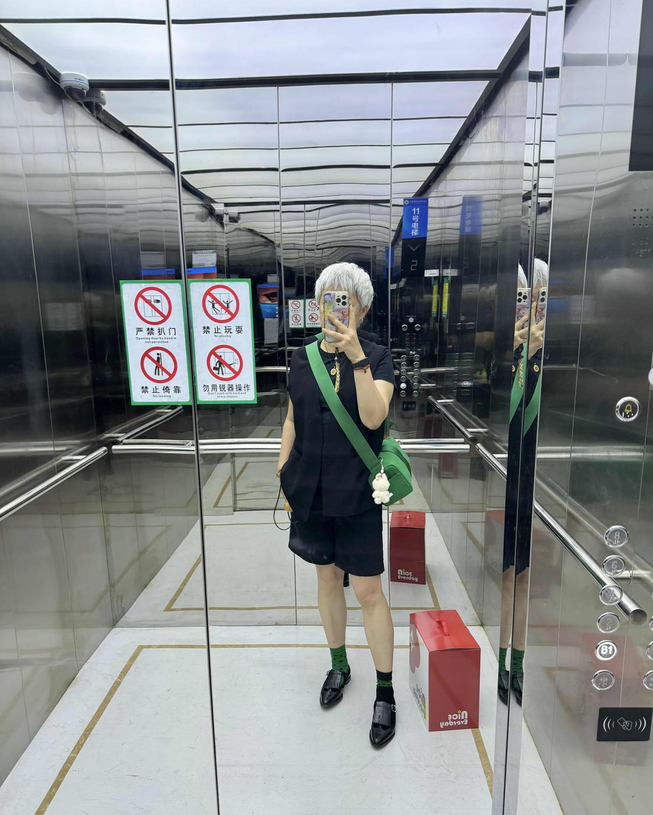 这几日的云有点好看,我也有点好看[偷笑] 上海看着好像是温度低了,但依然闷热。以往这个时候可以穿长袖了,早晚可能还要外套。但是上海今年就是这么神奇(妖孽)依然可以穿短袖短裤。刚才看天气预报,后面三天又都34度了,老天爷呀[捂脸] 晚上出去锻炼的时候,有点凉意,这几日天空很好看。 其实这件马甲也是新的,和其它马甲不一样的地方是宽松版的,并且很薄,带点丝质的。anyway,今天的重点是新包包,因为包包颜色太亮,所以穿了全身黑。 除了我的包包,亮点在哪呢?[偷笑][偷笑][偷笑]